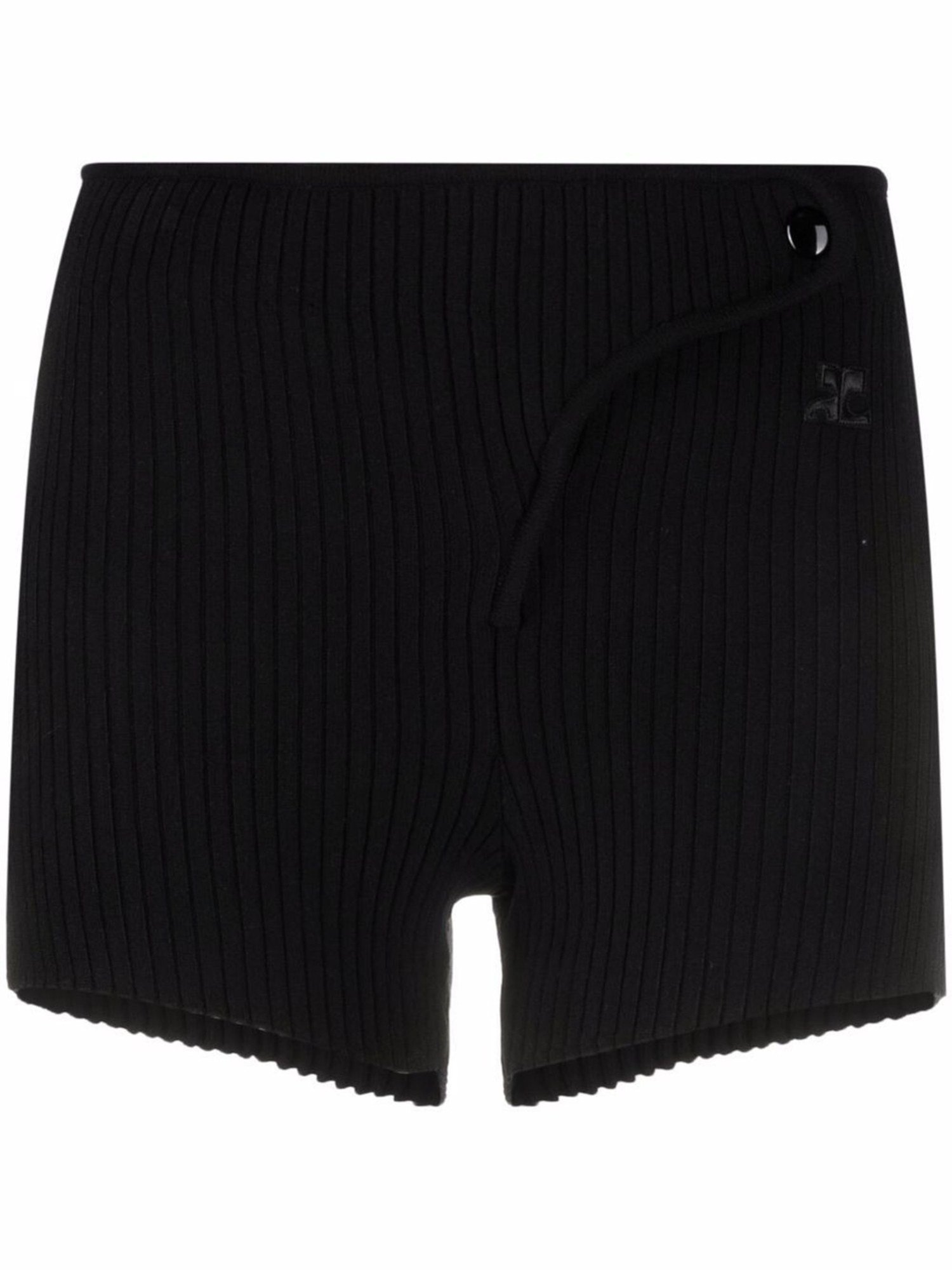 Описание: Черные трикотажные мини-шорты в рубчик от COURRÈGES с вышитым логотипом, средней посадкой и эластичным поясом. Сделано в Болгарии.