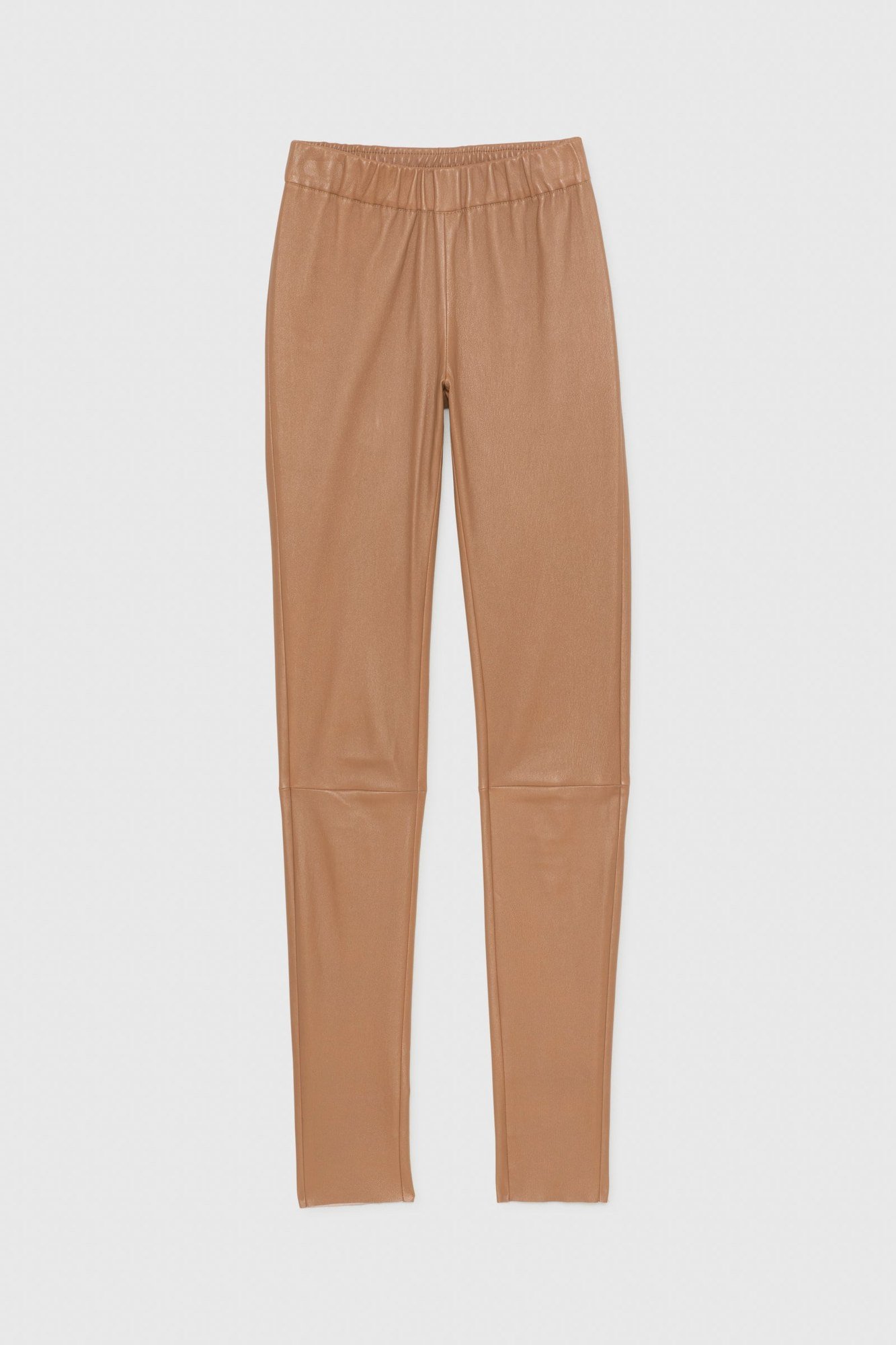Кожаные леггинсы бежевые MAX&MOI женские - размер 38 (M)