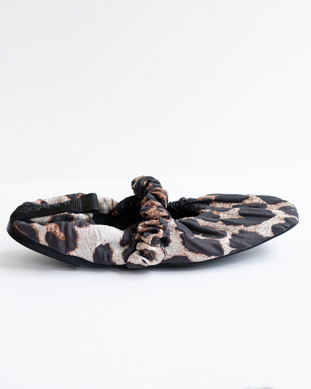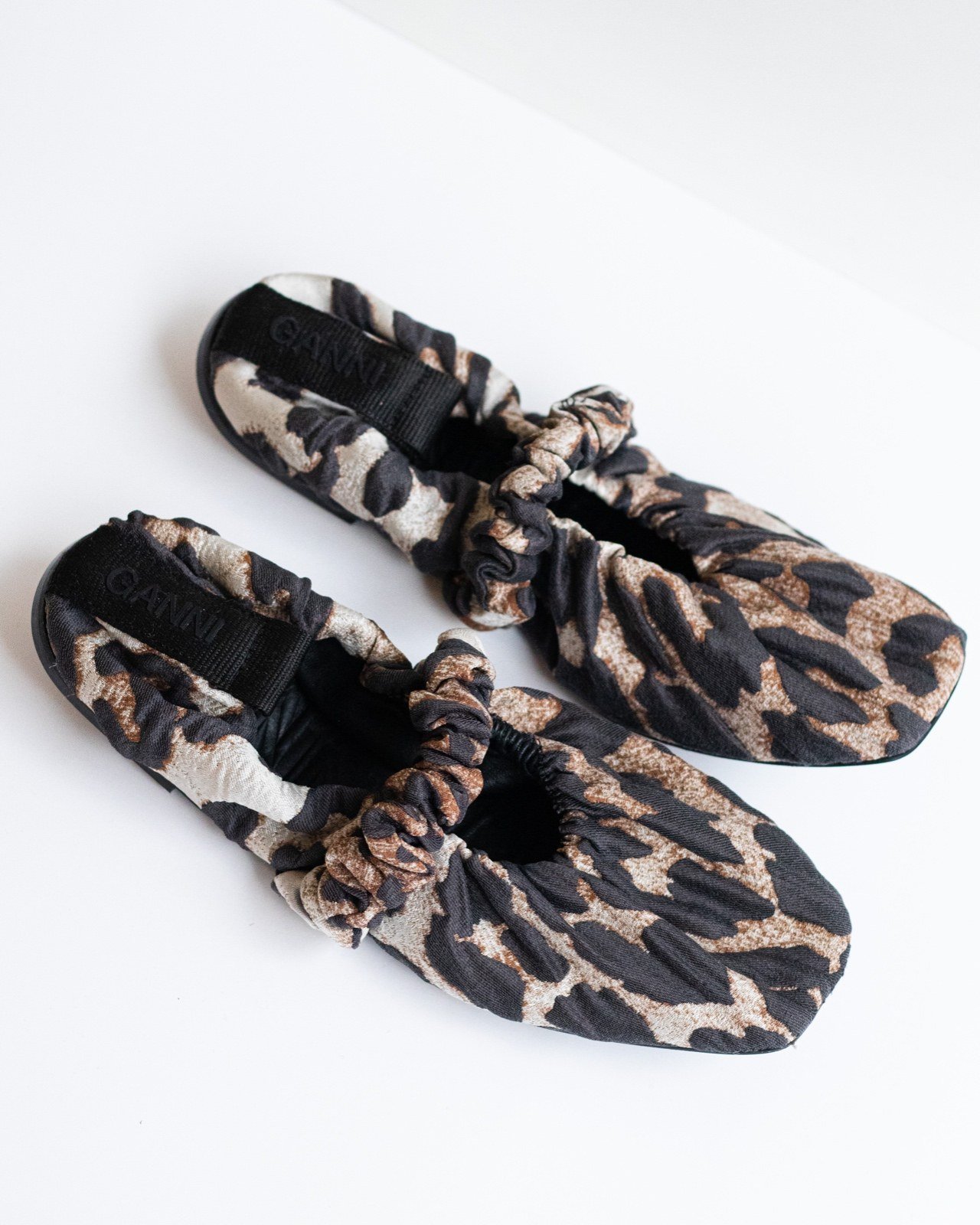 Плотная ткань, логотип бренда, леопардовый рисунок, кожаная подкладка, резиновая подошва, балетки мери джейн.