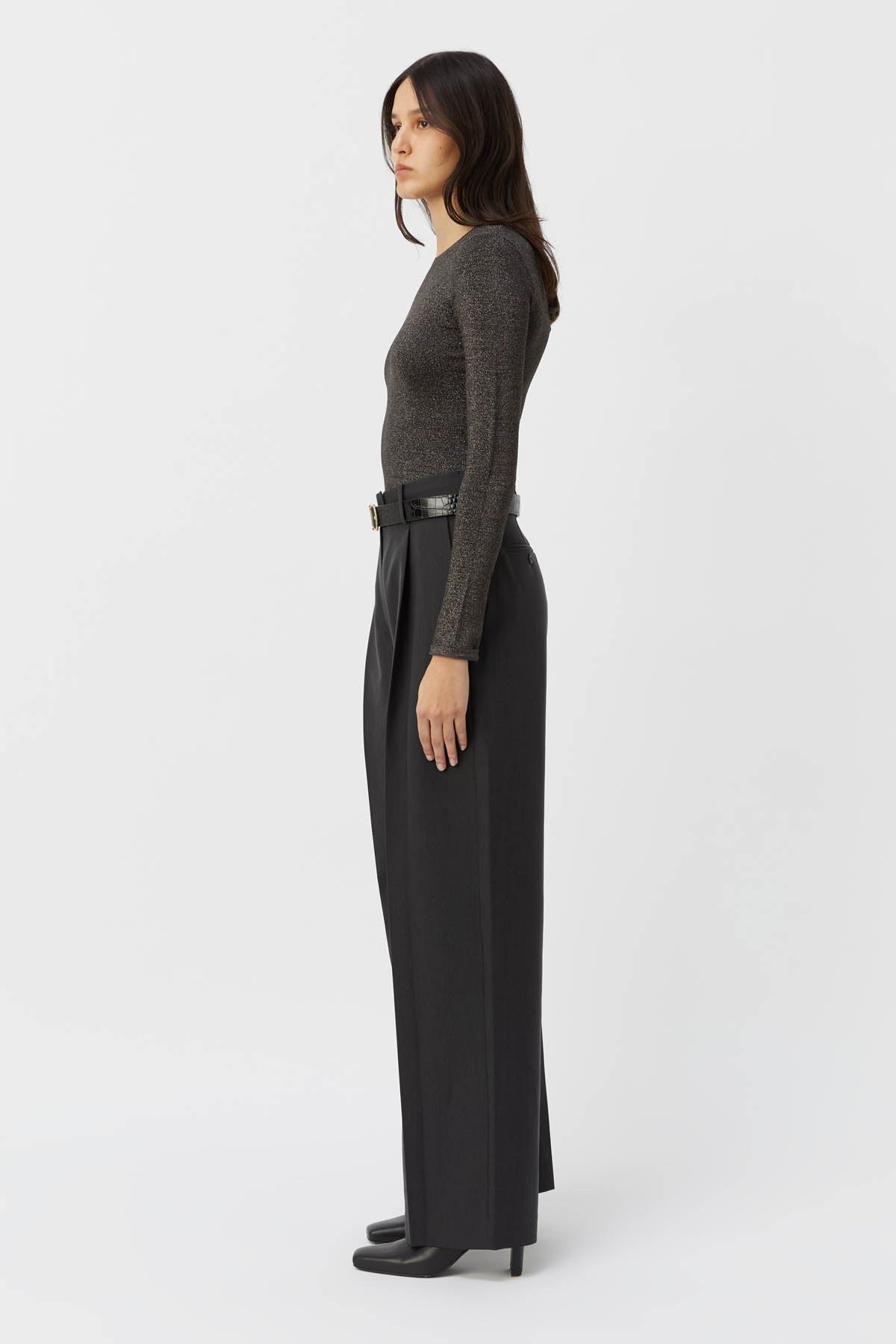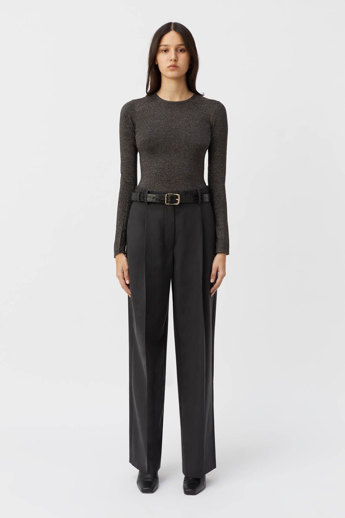 боди CAMILLA AND MARC Jaxon темно-серого цвета. Блестящее трикотажное боди. Рукава полной длины. Разработано для плотного прилегания. Круглый вырез. Ластовица с застежкой.