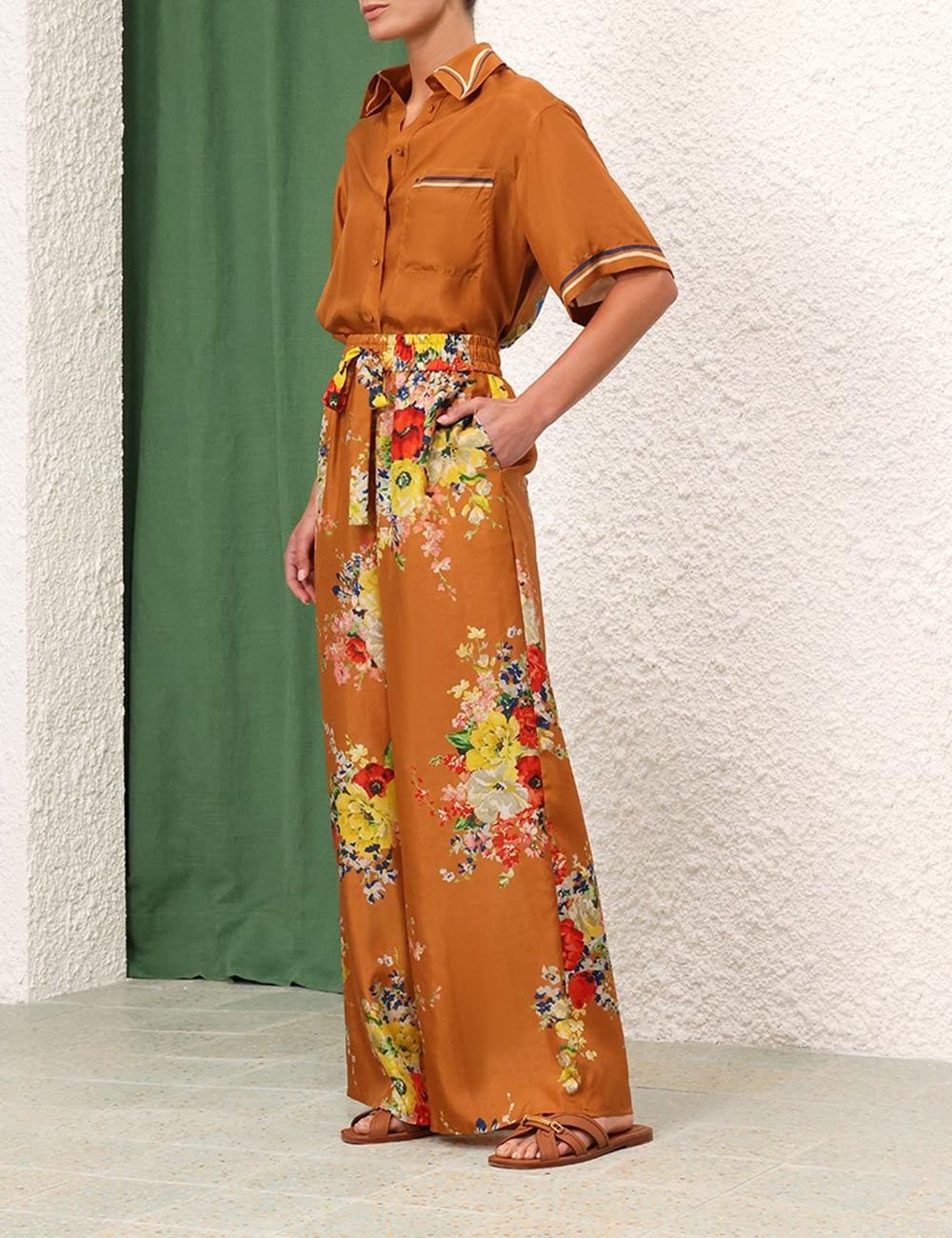 Широкие брюки с поясом на шнурке.