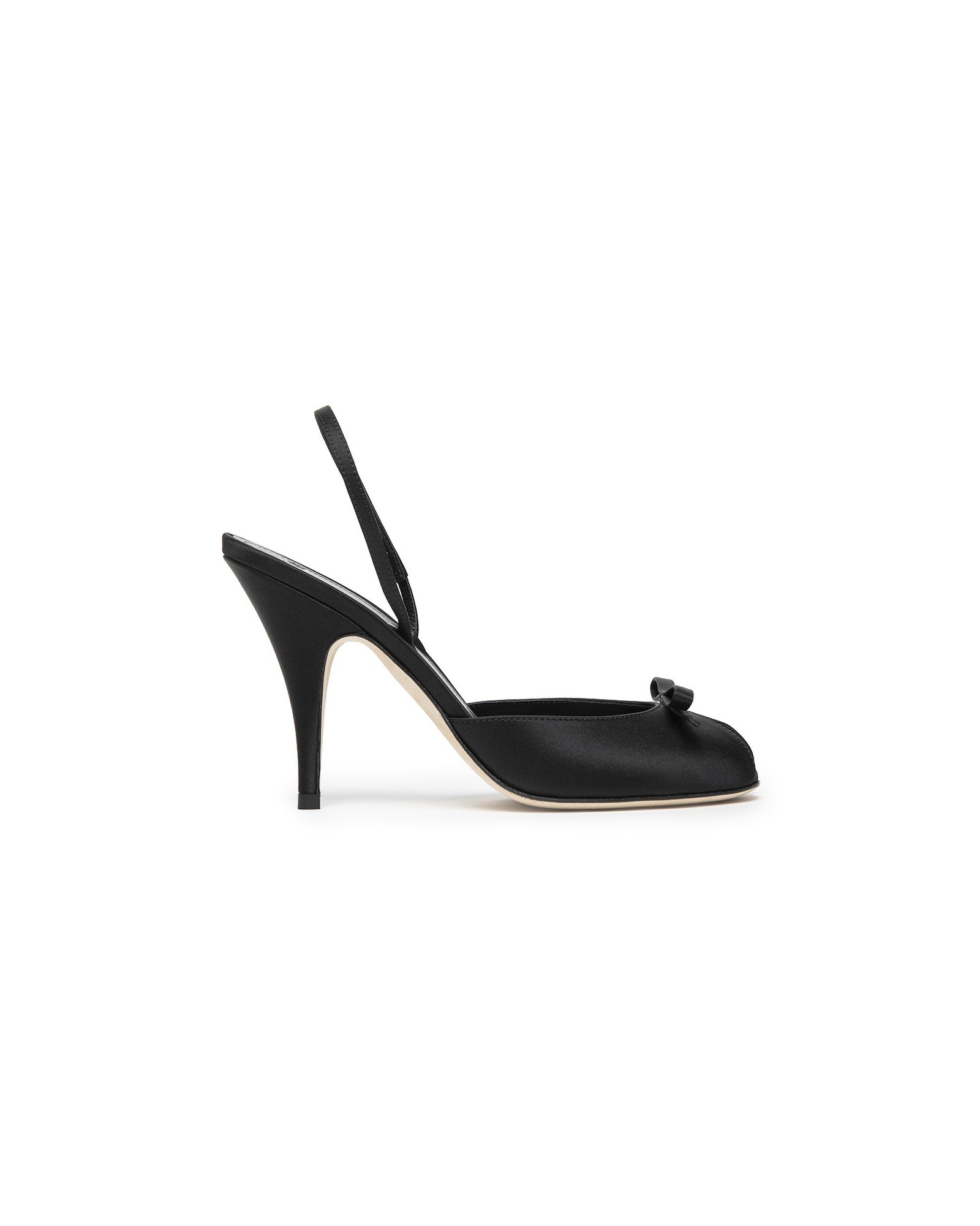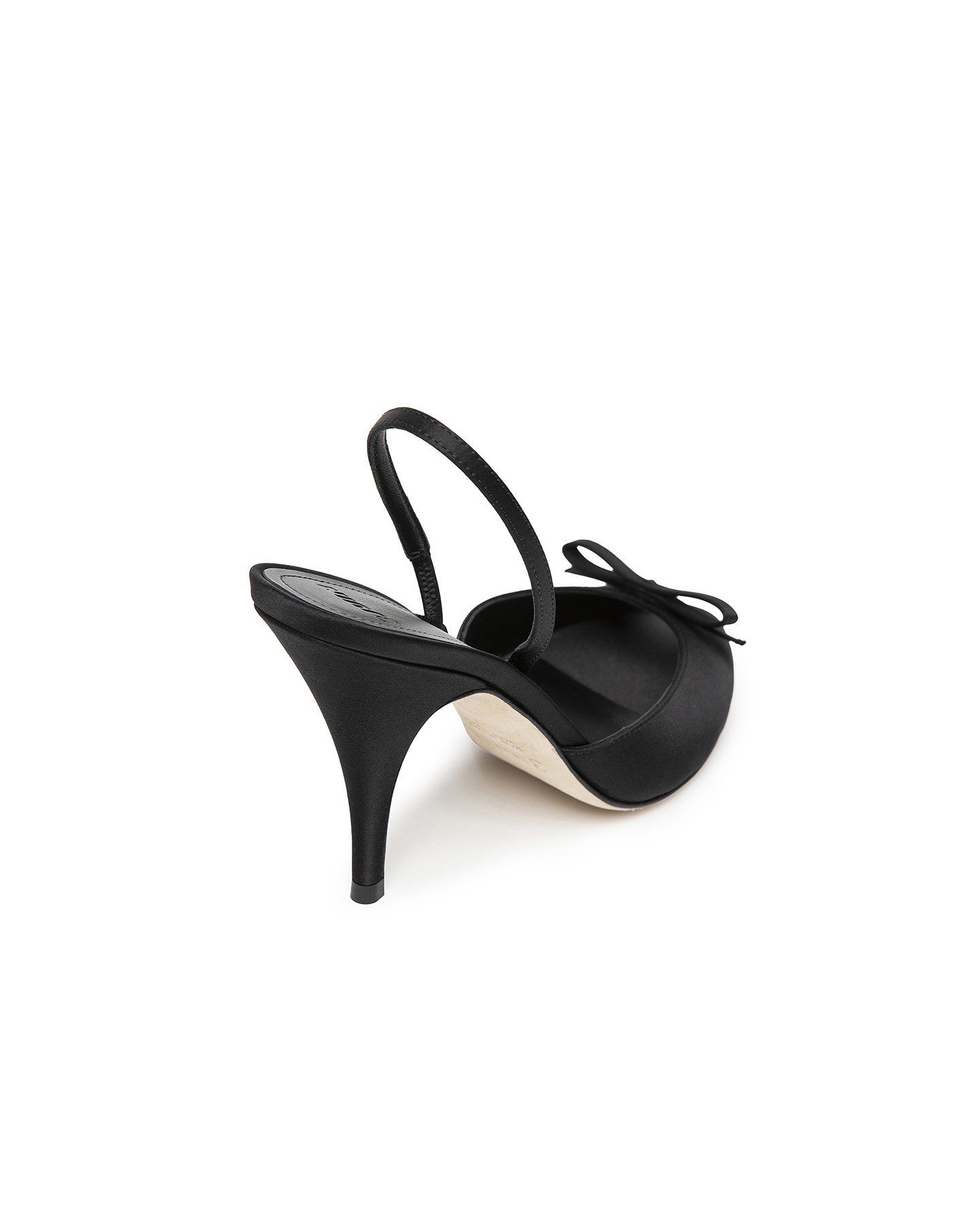 Атласные слингбеки с открытым носком и бантом спереди. Четкие линии и высокий каблук-шпилька для элегантного и женственного образа. Идеально подходят для особых случаев и изысканных нарядов.