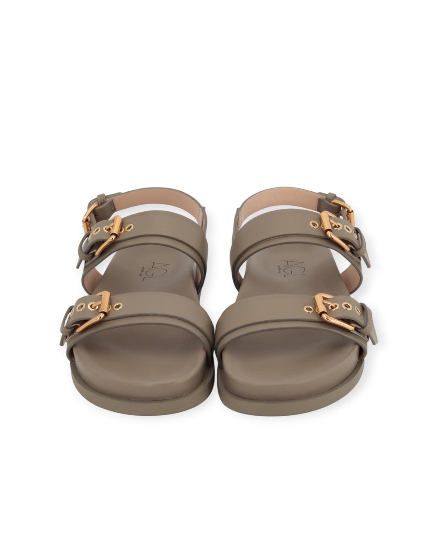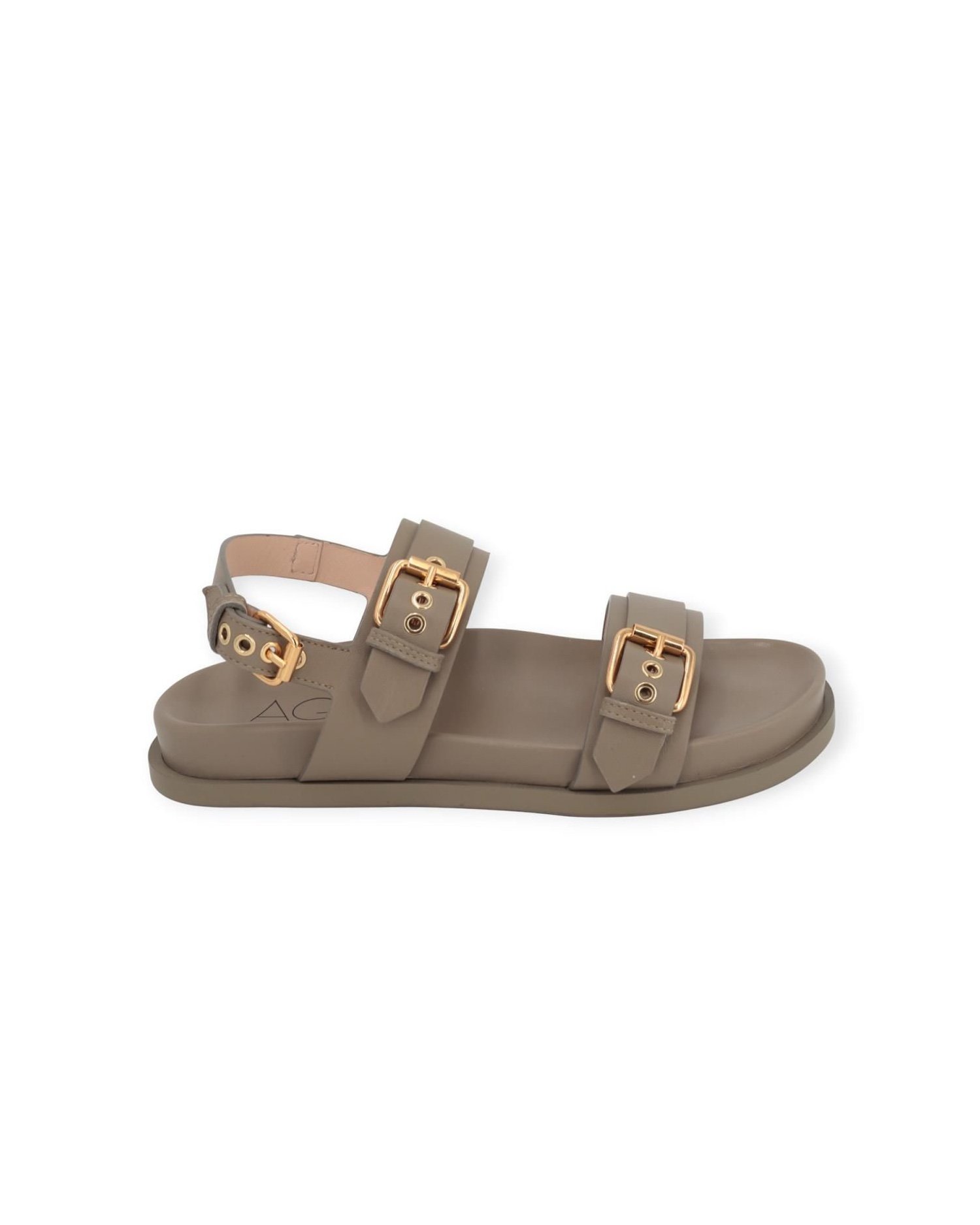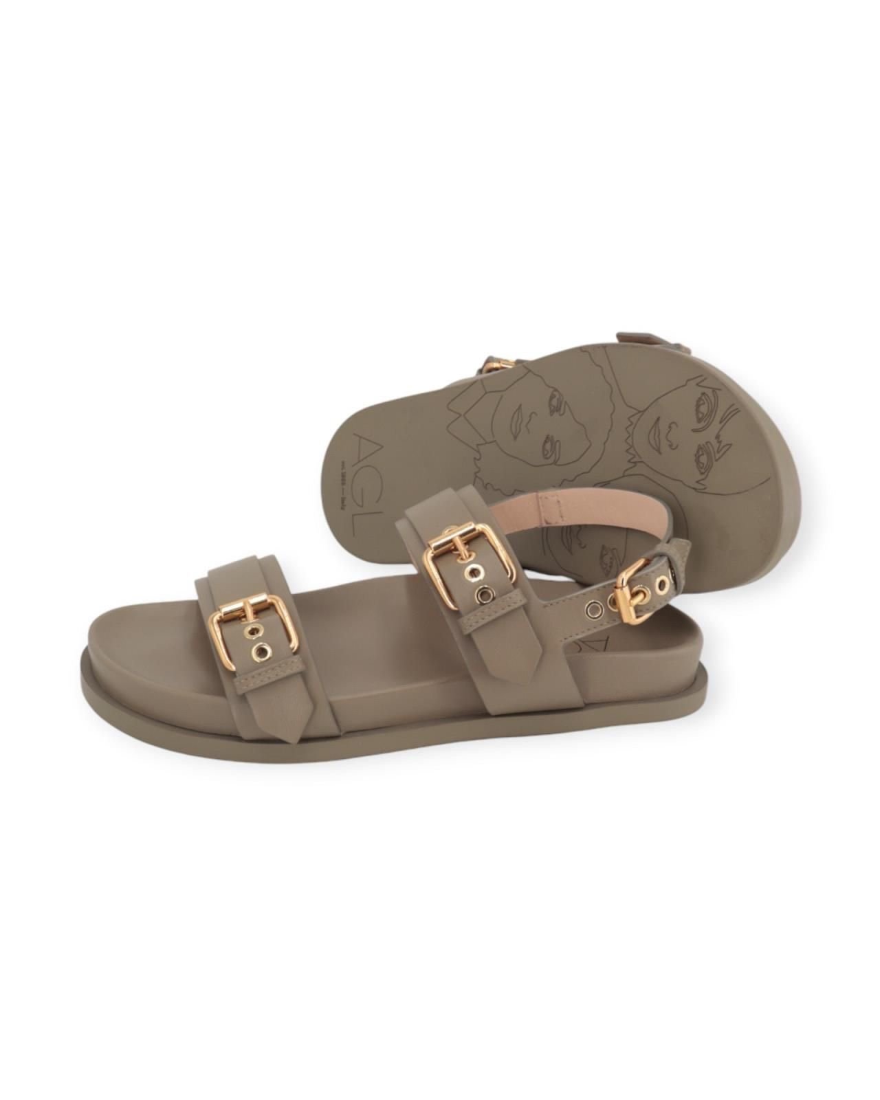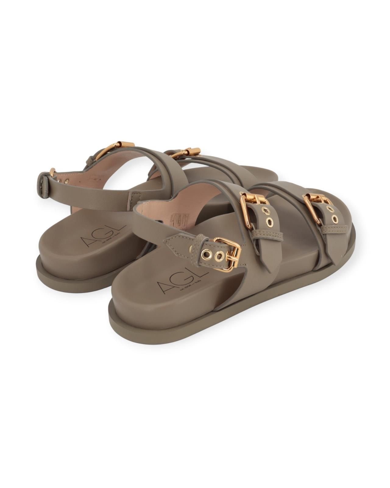 Женские сандалии AGL Cristina полностью изготовлены из кожи. Имеют два ремешка из-за подъема стопы и один вокруг лодыжки. Украшенные золотыми пряжками и изящными люверсами, они придают стилю элегантный вид. Они сидят на удобной и надежной стельке.