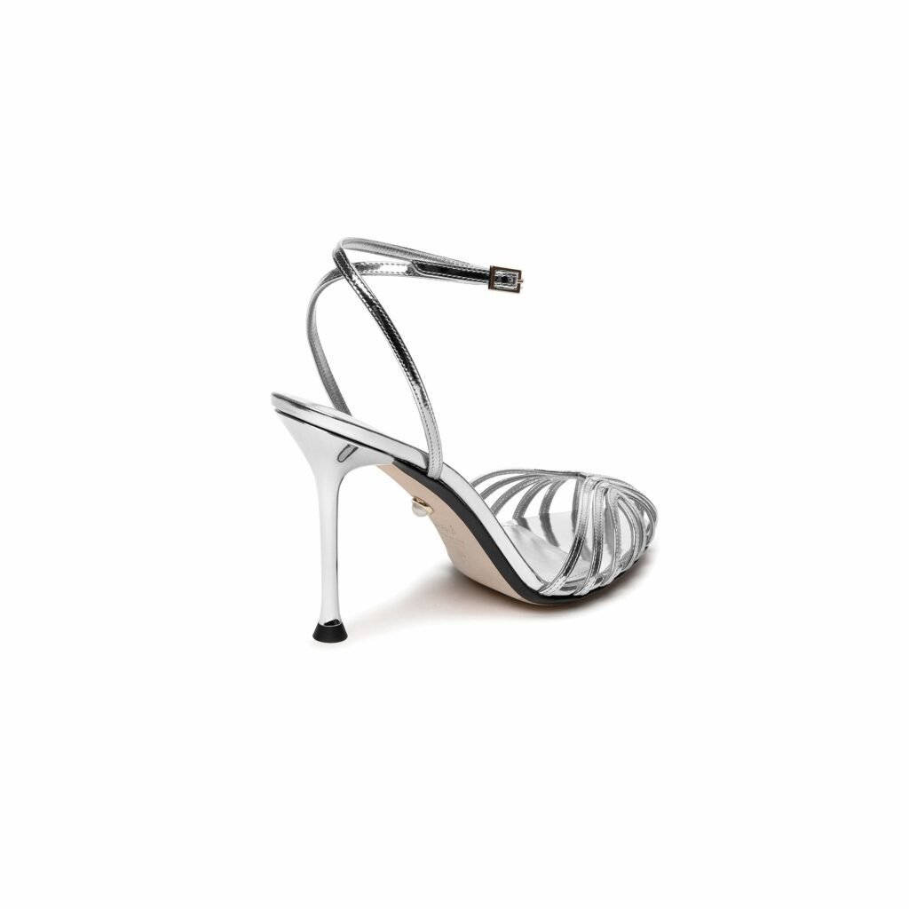 Блестящие кожаные босоножки в клетку с хромированным каблуком в тон. Тонкие полоски на носках и перекрещенный ремень на лодыжке с маленькой боковой пряжкой. Состав: 100% блестящая кожа - кожаная подошва с аксессуаром Pearl