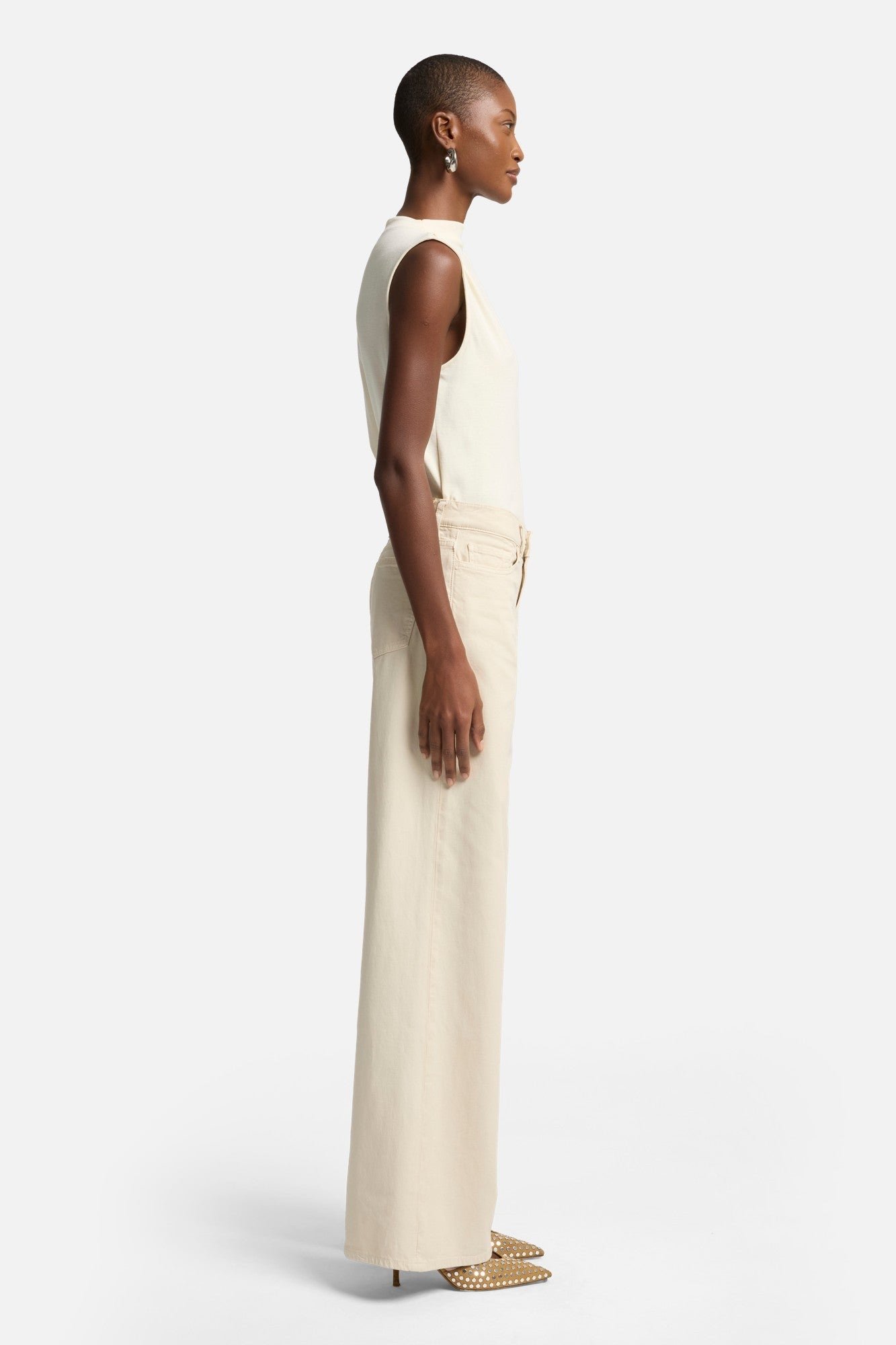 Посадка: Высокая талия широкого кроя с полным силуэтом, легко переходящая от талии к штанинам, создавая смелый, но в то же время расслабленный образ.