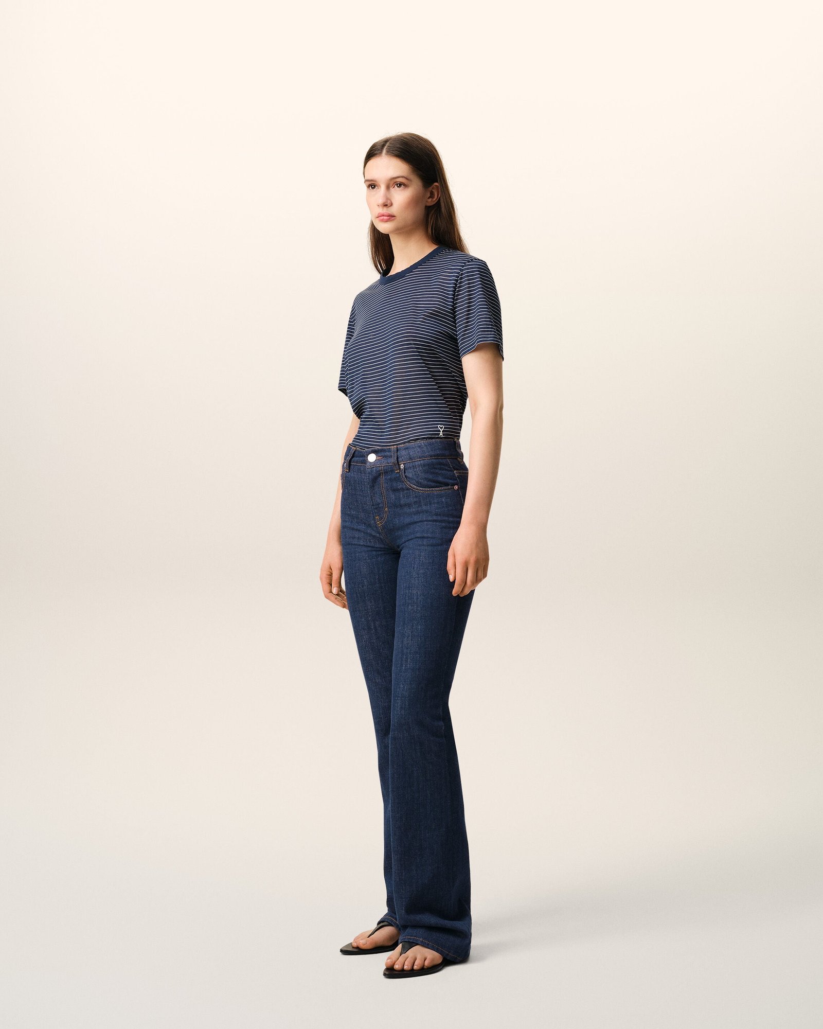 Крой расклешенные, низкая посадка, прямые, а затем немного расклешенные штанины, 5 карманов, застежка-молния, джинсовые пуговицы и Alexandre. сзади, декоративная просрочка табачного цвета.