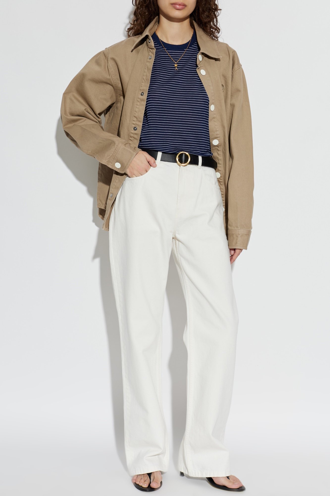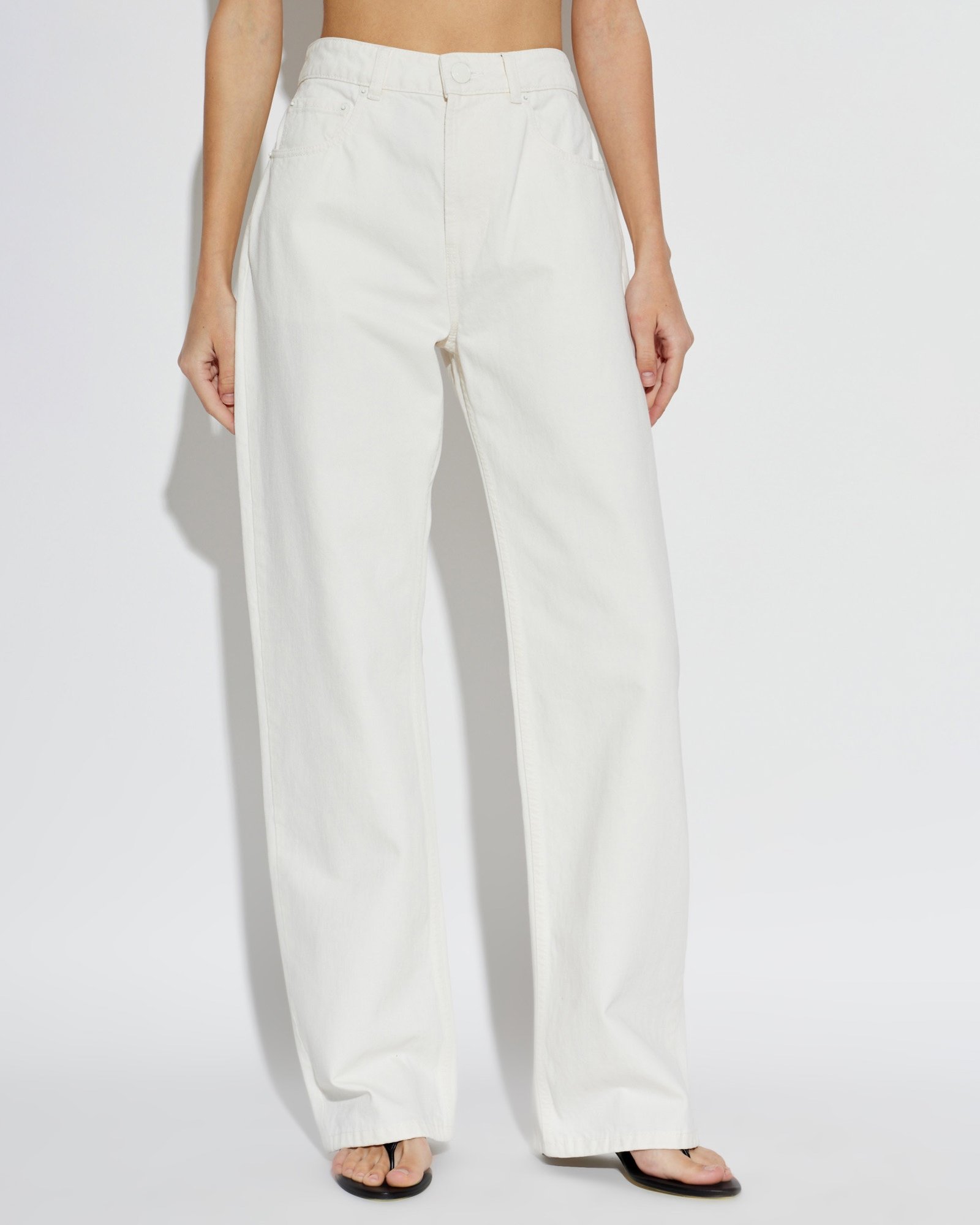 Тщательно изготовлены из чистого, нерастяжимого хлопкового денима, их жесткая структура чтит классический стиль, в то же время предлагая бескомпромиссный силуэт. Безупречный белый оттенок наполняет каждый ансамбль ощущением изысканной свежести, преподнося ваш гардероб безошибочно эксклюзивным шармом.