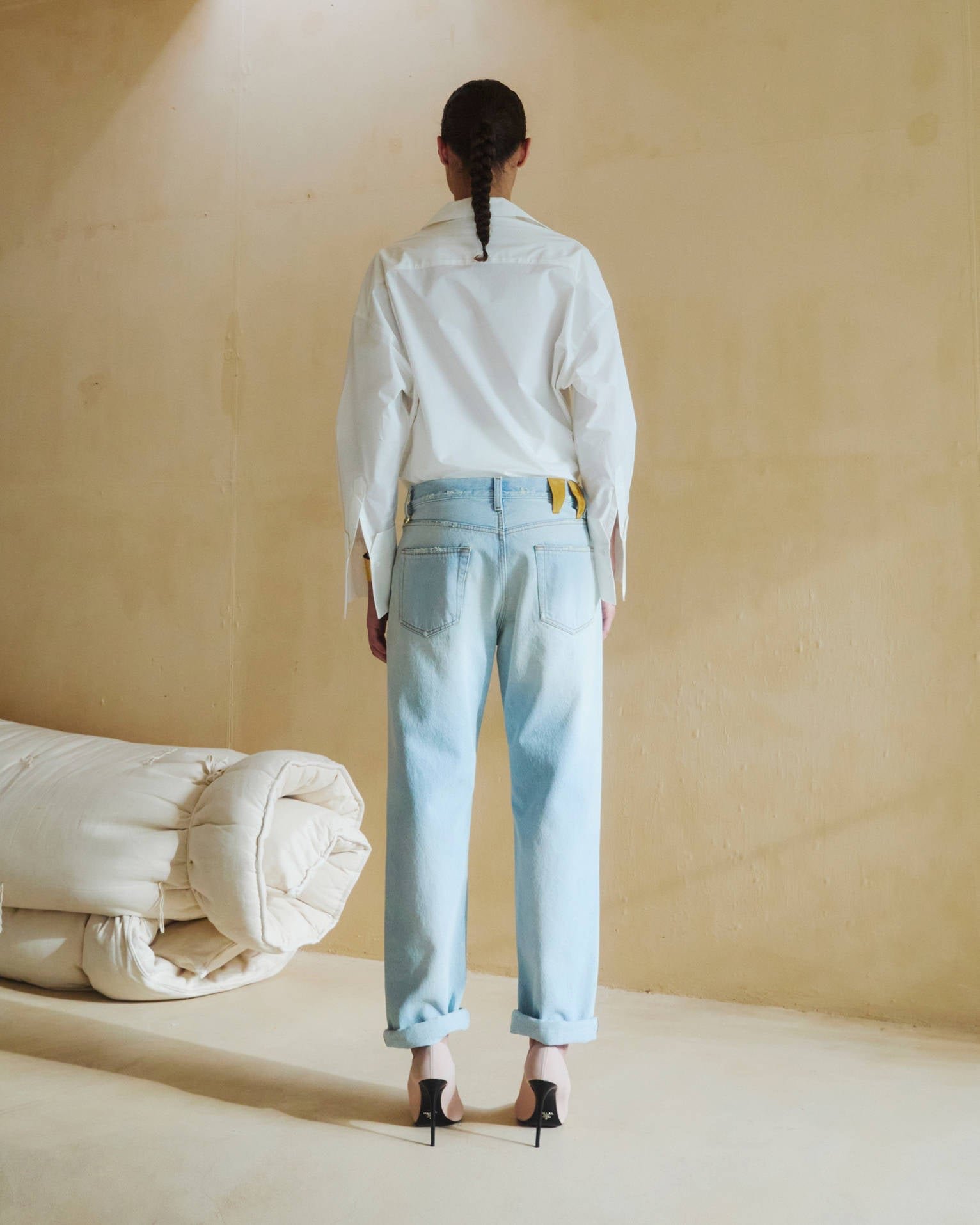 Джинсовb бойфренд с прямыми штанинами NAOMI, украшенный цепочкой, со светлой отделкой.