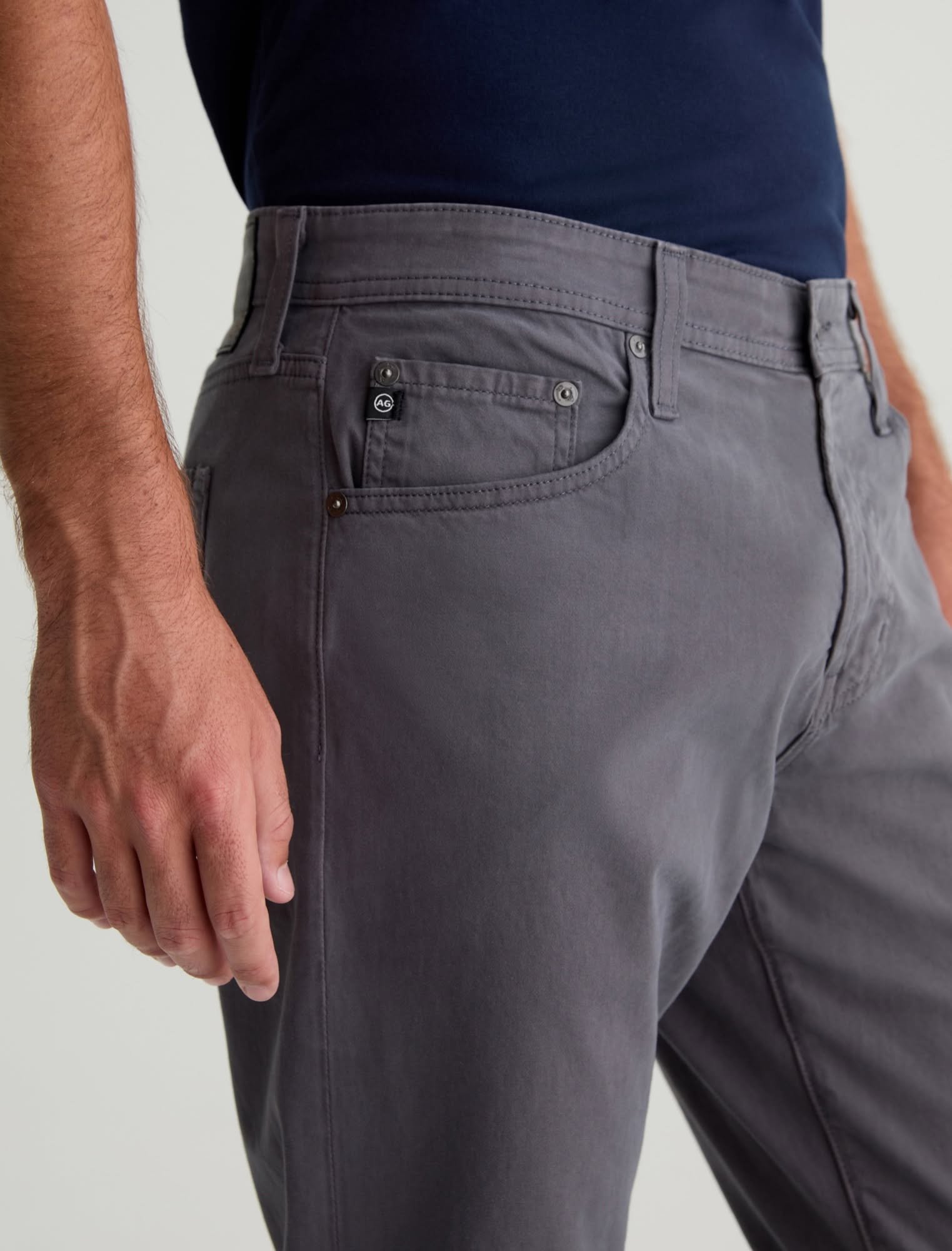 Узкие прямые джинсы для мужчин серого оттенка с удобной средней посадкой на талии и прямым кроем, расслабленным от бедра до колена, а затем слегка сужающимся в разрезе штанины. Эти мужские узкие прямые джинсы весом 8,4 унции. Замшевый эластичный сатин, супер эластичный материал для максимального комфорта и сдержанной роскоши. Состав: замшевый эластичный сатин, 8,4 унции. 97% хлопок, 3% эластан