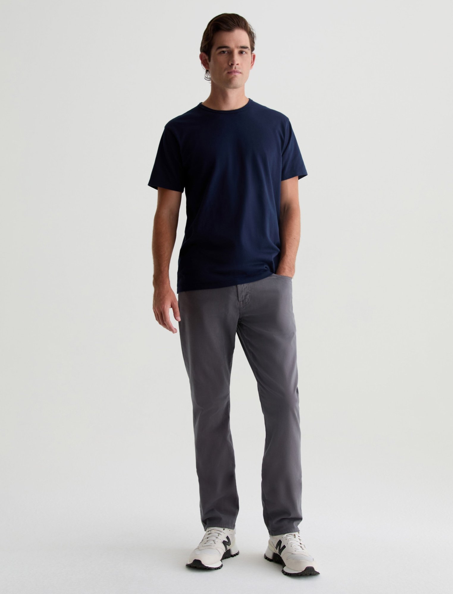 Узкие прямые джинсы для мужчин серого оттенка с удобной средней посадкой на талии и прямым кроем, расслабленным от бедра до колена, а затем слегка сужающимся в разрезе штанины. Эти мужские узкие прямые джинсы весом 8,4 унции. Замшевый эластичный сатин, супер эластичный материал для максимального комфорта и сдержанной роскоши. Состав: замшевый эластичный сатин, 8,4 унции. 97% хлопок, 3% эластан