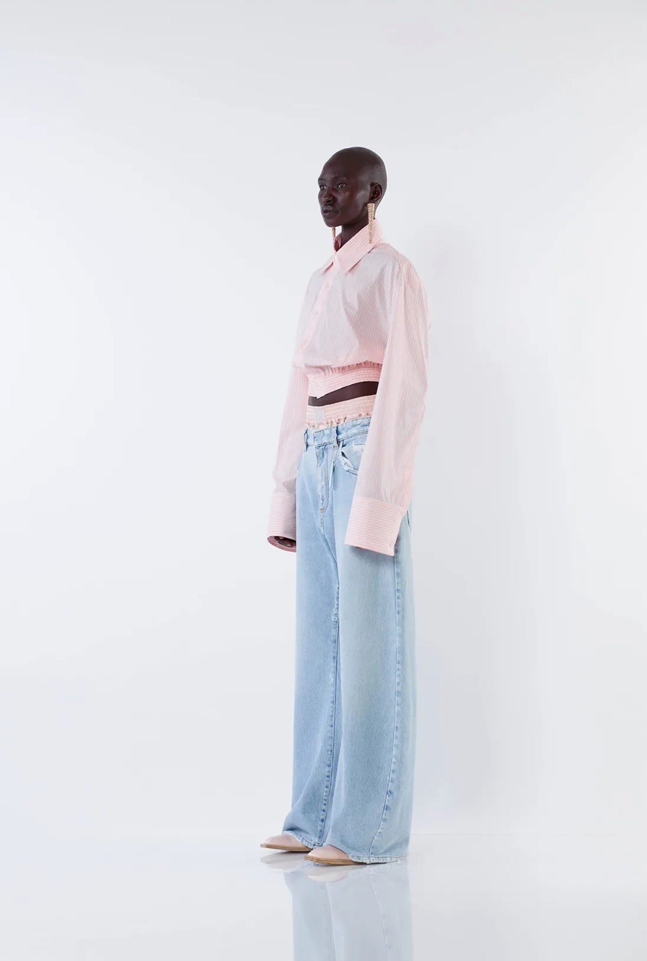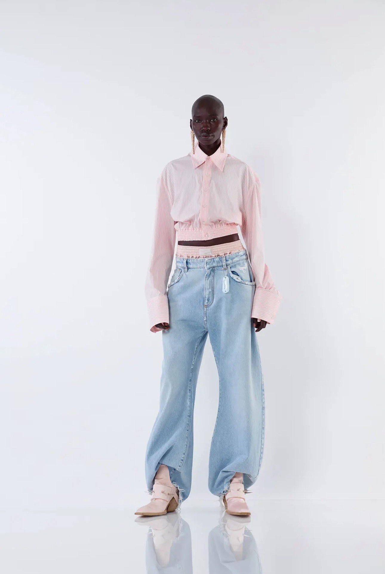 Мешковатые большие джинсы с тонким узором в вертикальную полоску
