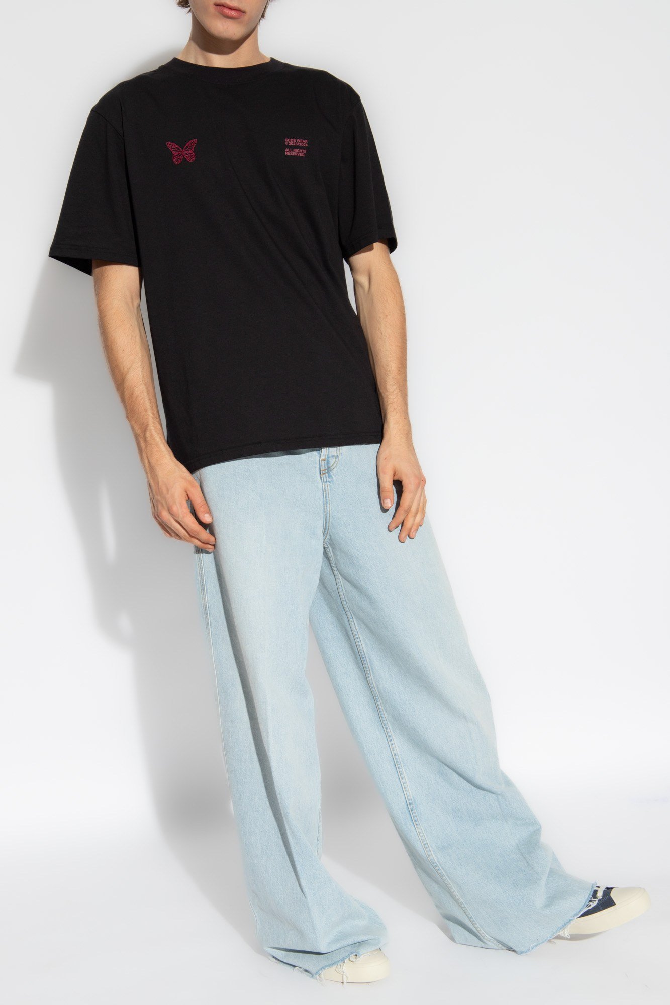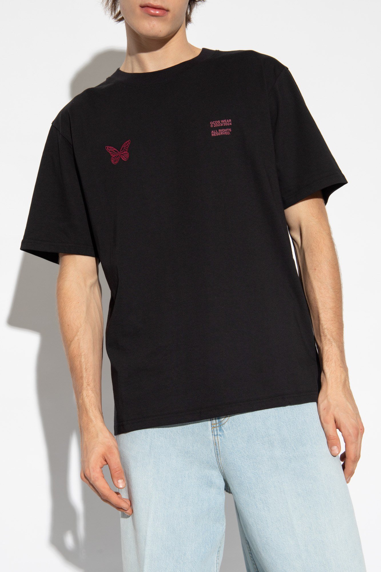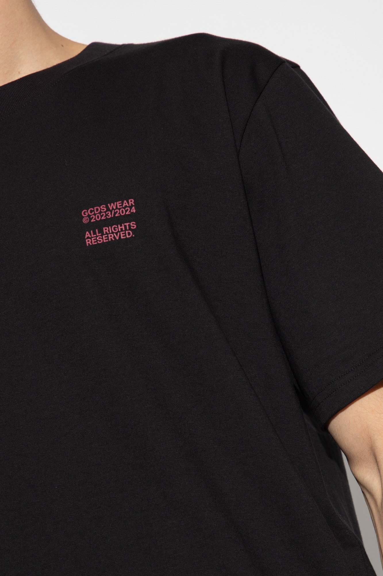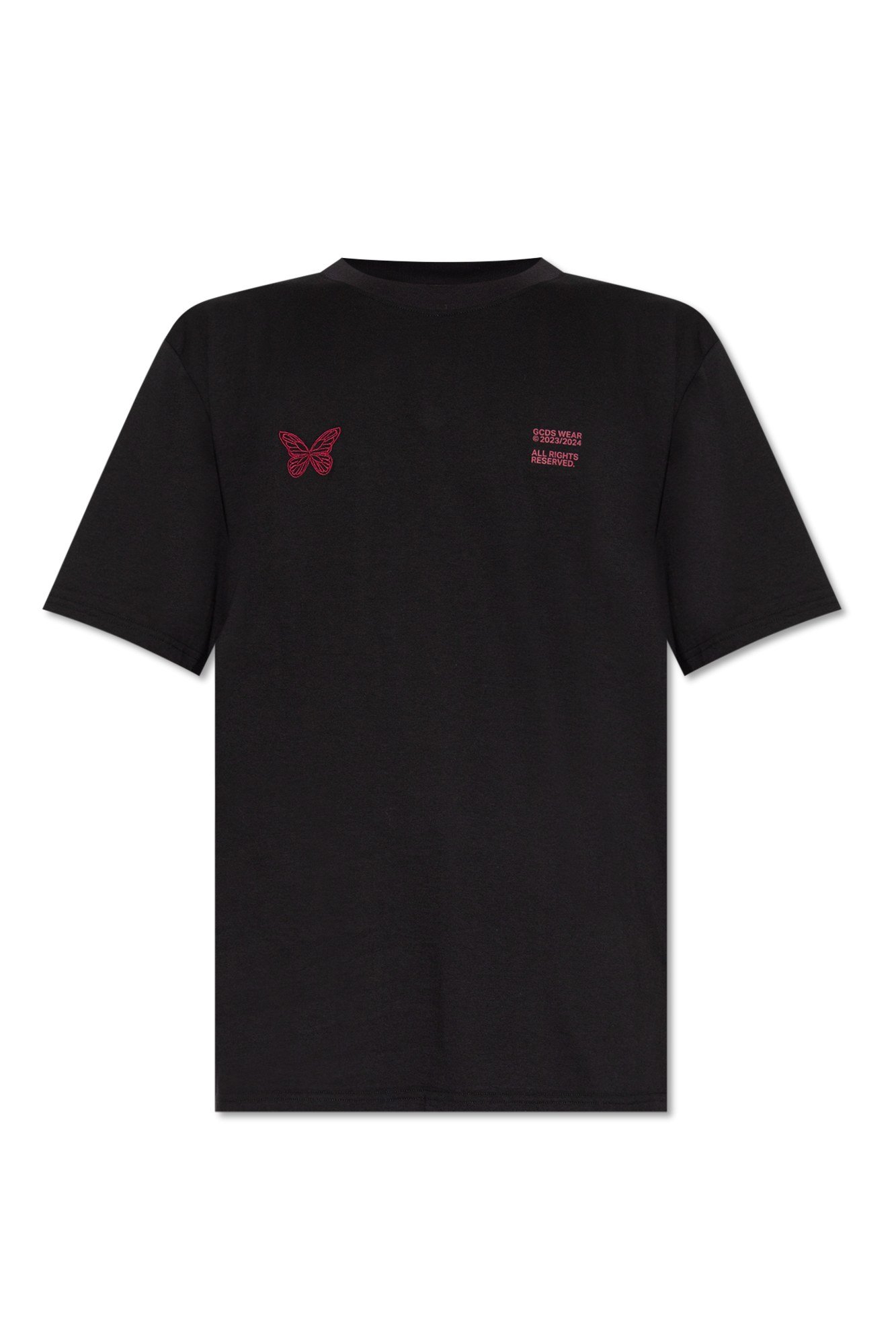Описание: Черная хлопковая футболка GCDS. Украшен розовым логотипом. Круглый вырез. Короткие рукава.