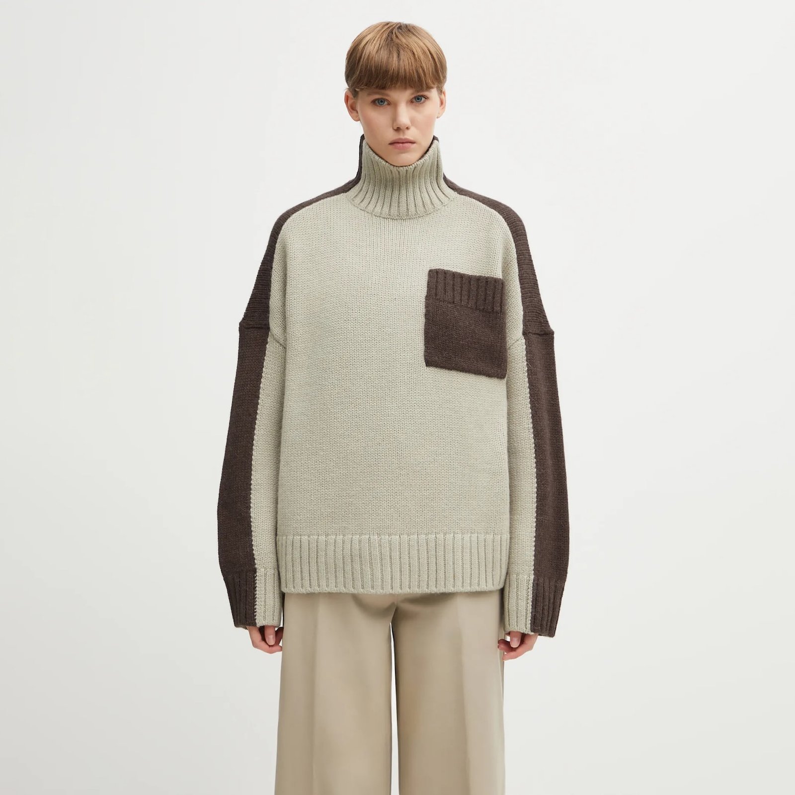 Свитер из коллекции JW Anderson выполнен из грубого трикотажа.