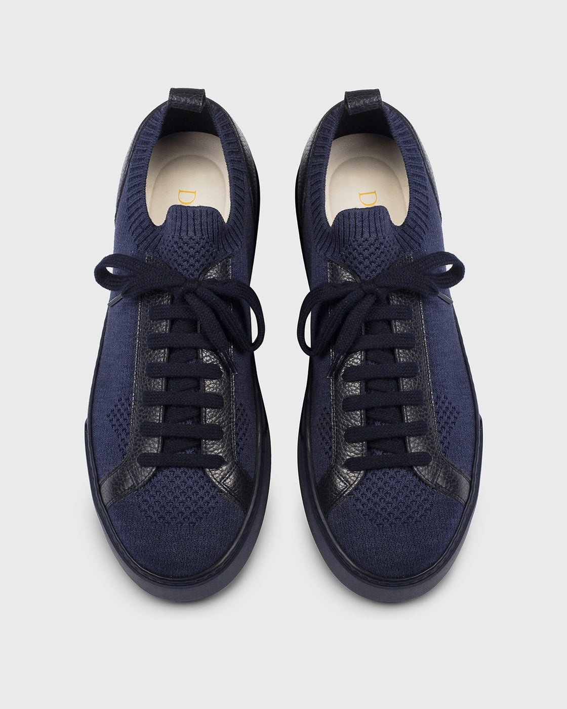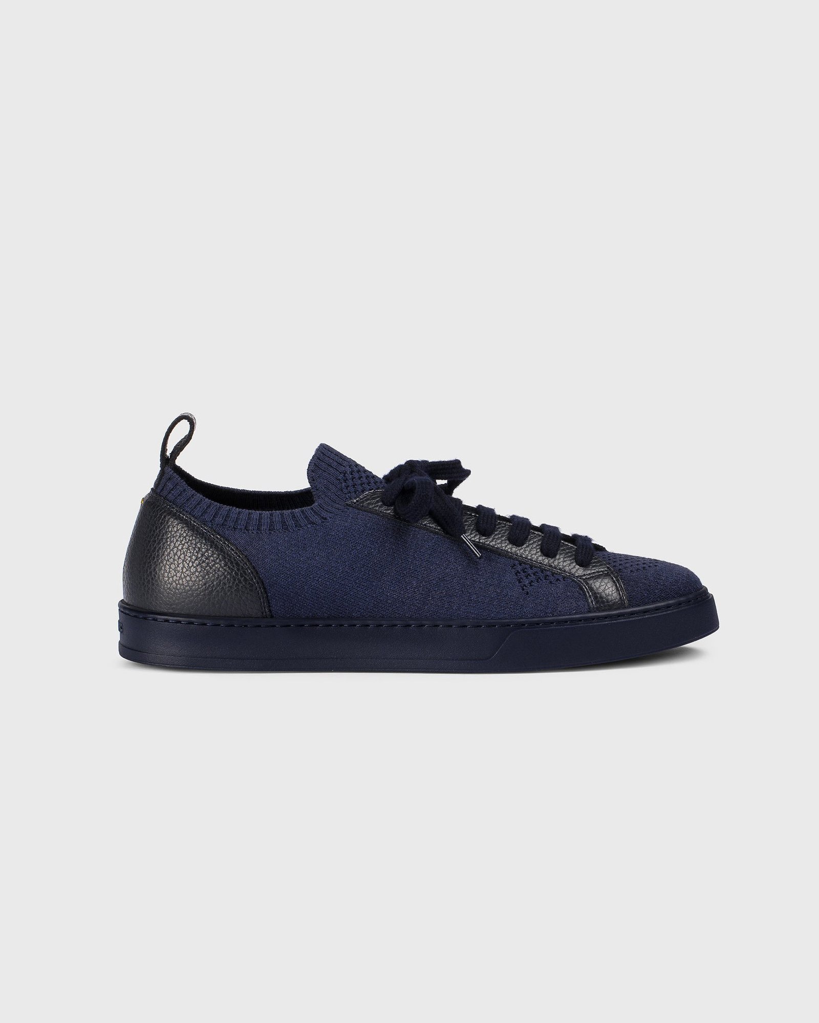 Кроссовки из ткани и кожи в оттенках синего цвета. Изысканные и непринужденные они идеально адаптируются к ноге благодаря эластичной вставке в области лодыжки. Стелька из материала Memory Foam гарантирует комфорт во время ходьбы. Ультралегкая резиновая подошва в контрастном белом цвете.