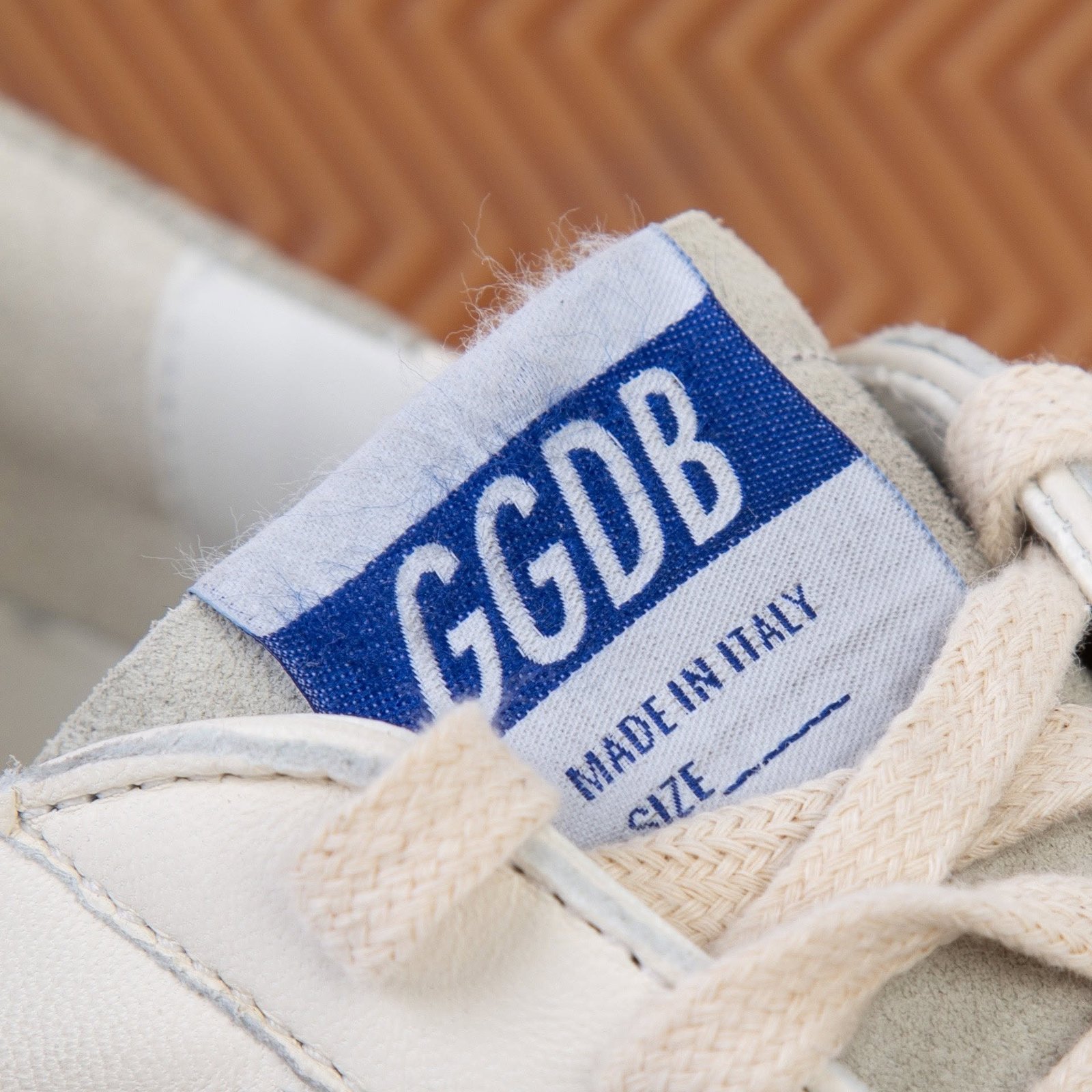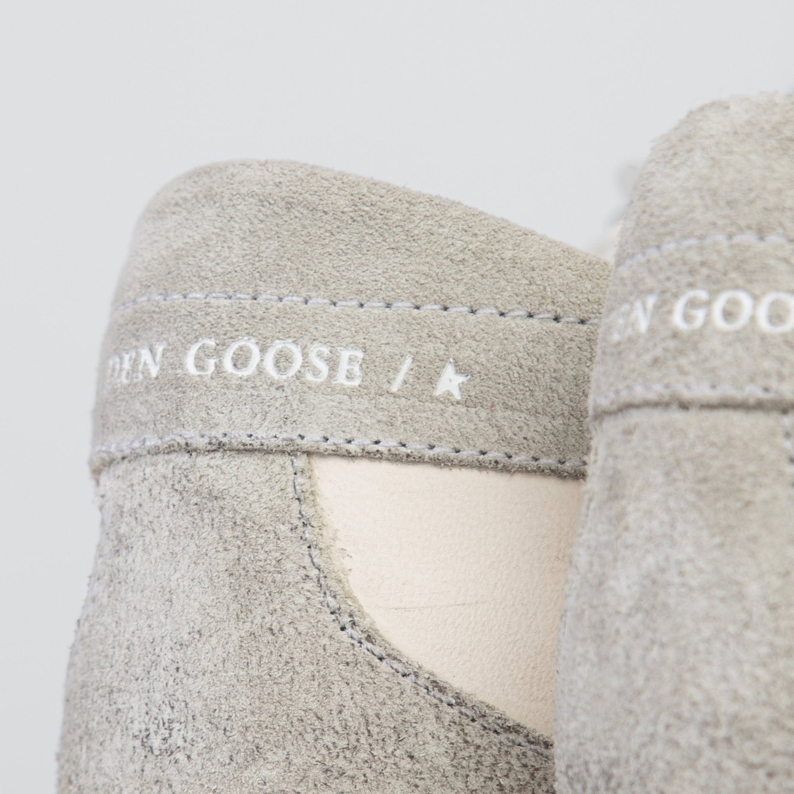 - Замшевый каблук, контрастная белая надпись «Golden Goose» сзади.