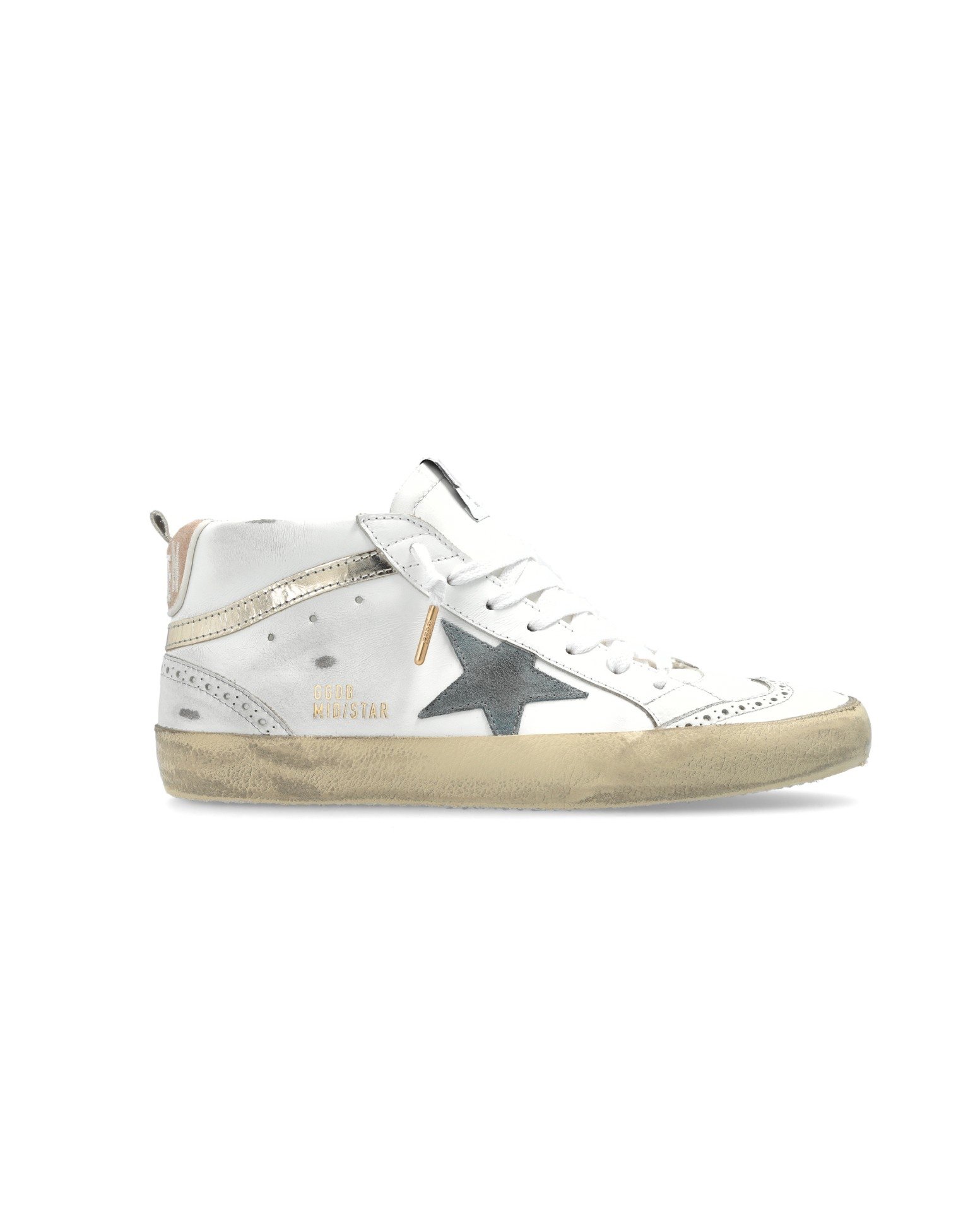 Кроссовки Mid Star Classic" из эксклюзивной коллекции Golden Goose, сочетающей в себе изысканный стиль и комфорт. Высокие кроссовки, достигающие выше щиколотки, олицетворяют суть модного характера, идеальные для тех, кто ценит уникальность.