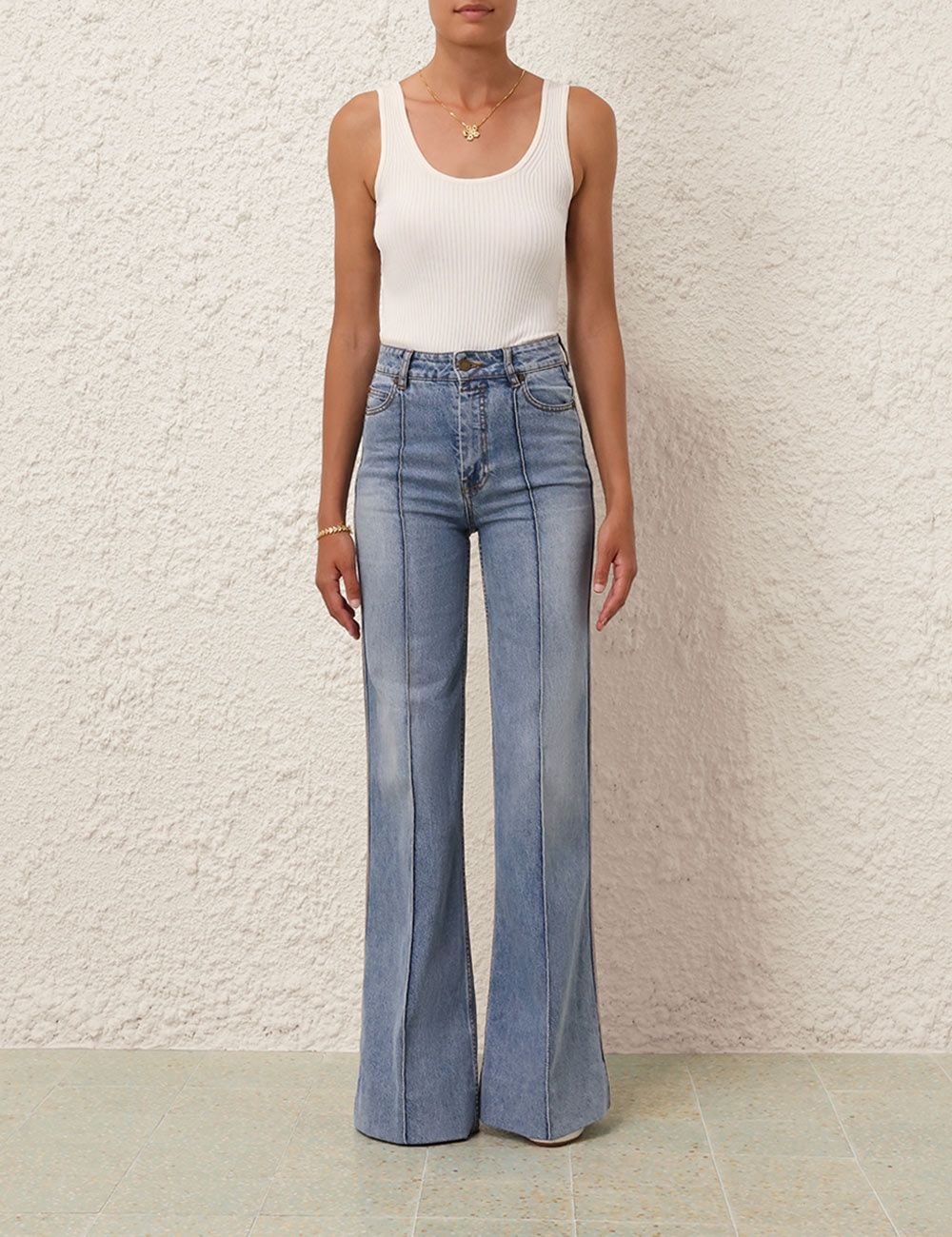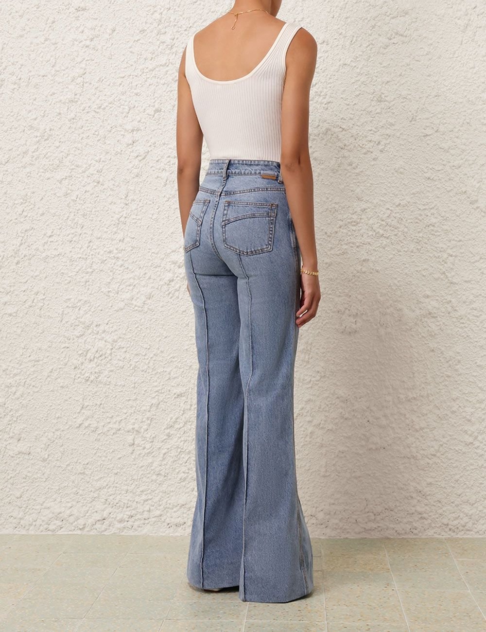 Приталенная майка из трикотажа в рубчик с широким вырезом спереди и сзади.