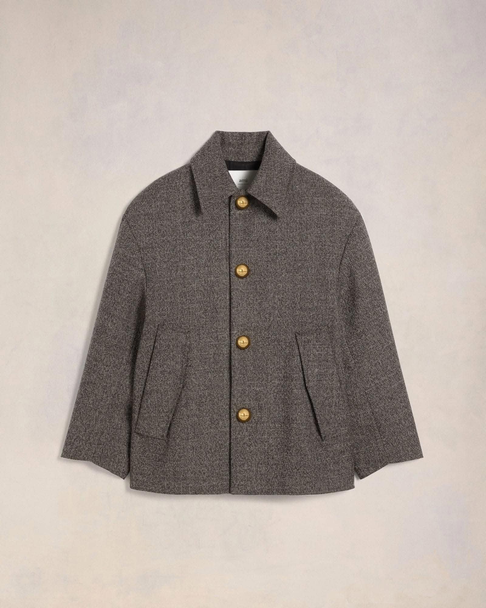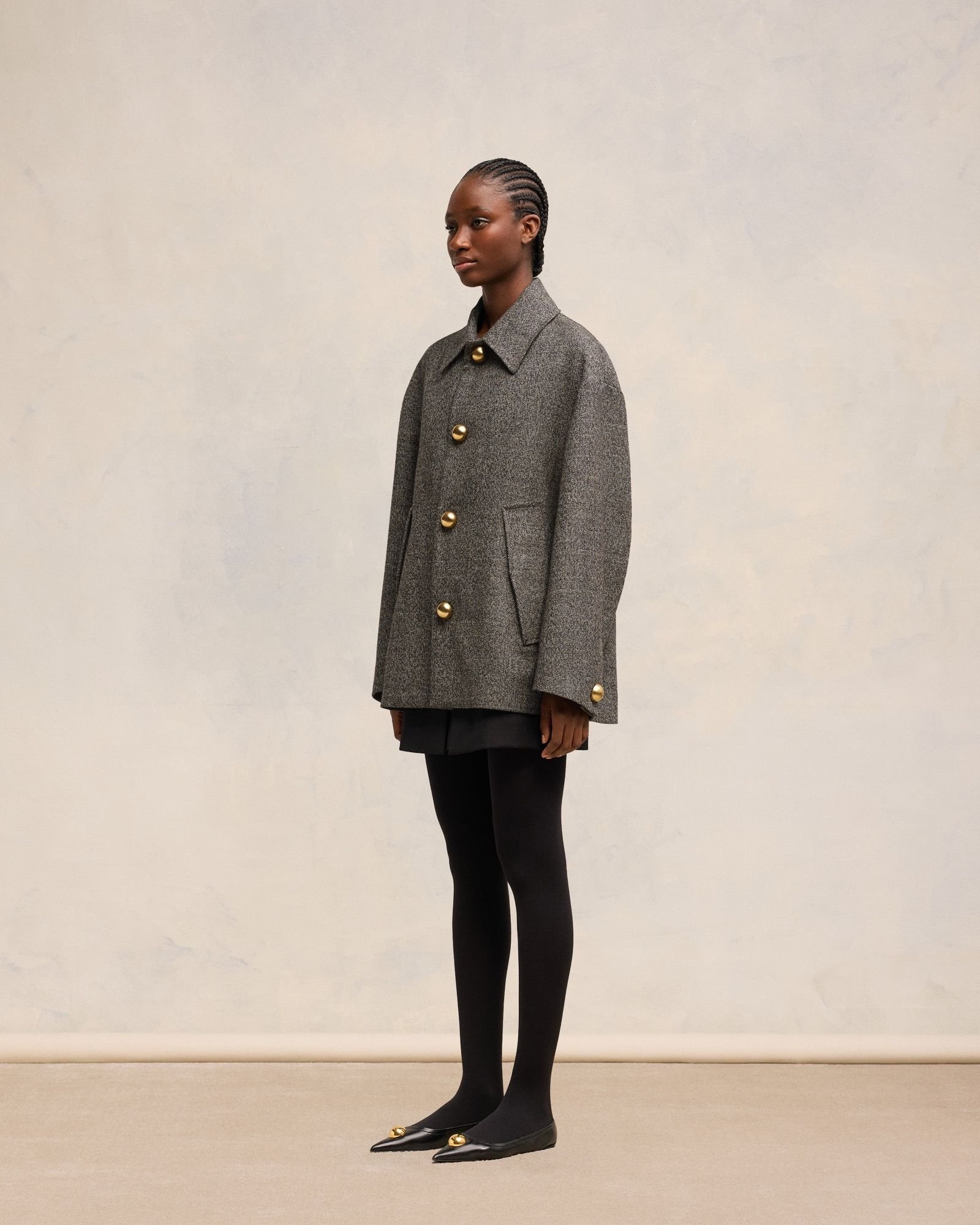 Краткое пальто большого размера с мулине из шерсти и хлопка.