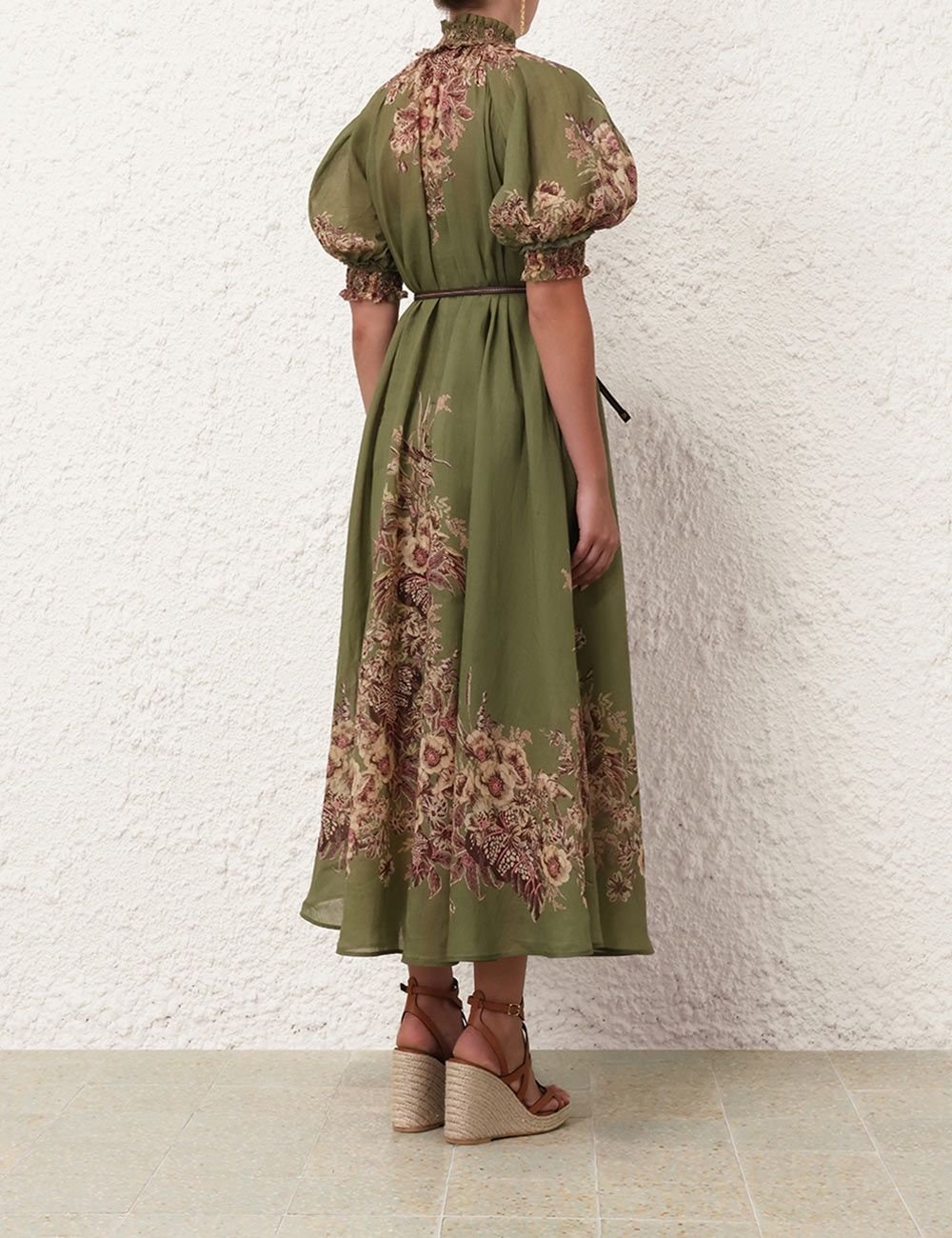 Платье Ottie Swing Maxi цвета хаки с цветочным орнаментом из летней коллекции Summer Swim 2024.