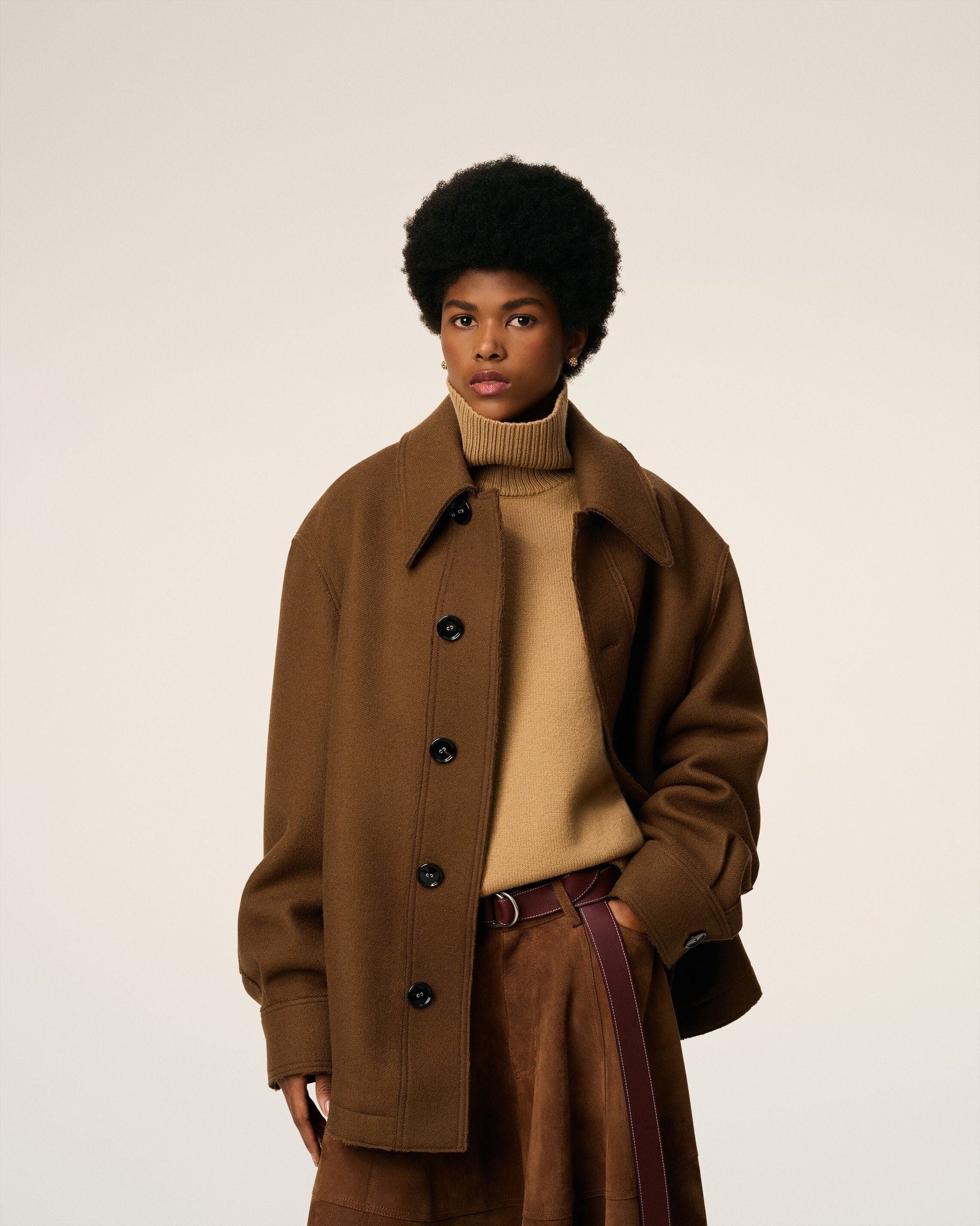 Пиджак из вареного шерстяного габардина на пуговицах.