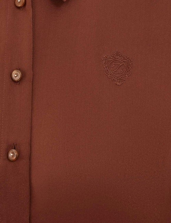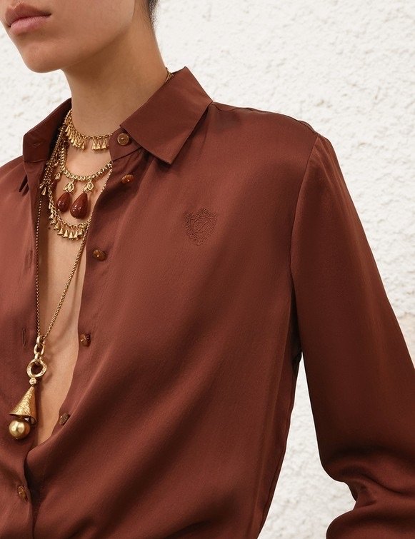 Атласная рубашка коричневого цвета из коллекции Hypnotic осень 2025 года.
