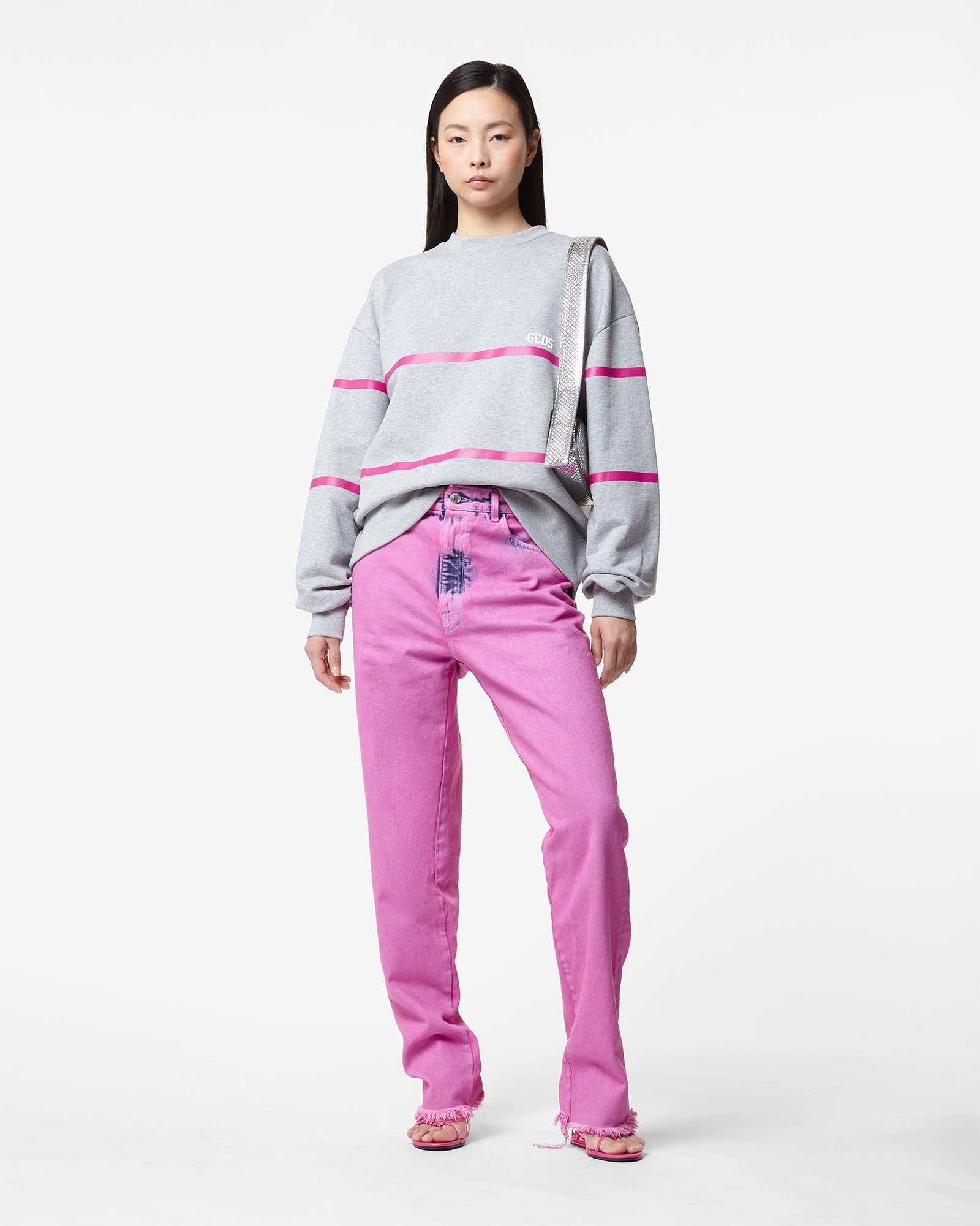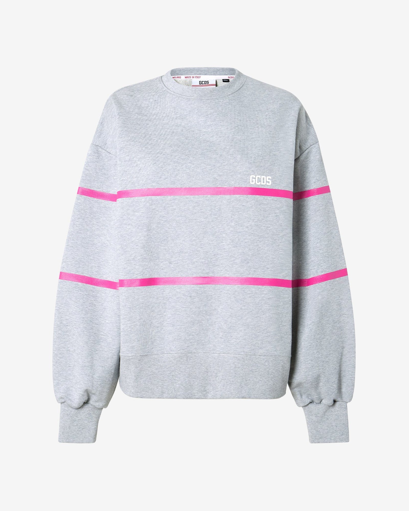 Описание: Хлопковый свитшот с круглым вырезом с длинными рукавами и заниженными проемами. Принт GCDS Stripes спереди, спины и рукавов. Толстый принт GCDS и логотип "GCDS Bliss" спереди. Негабаритный.