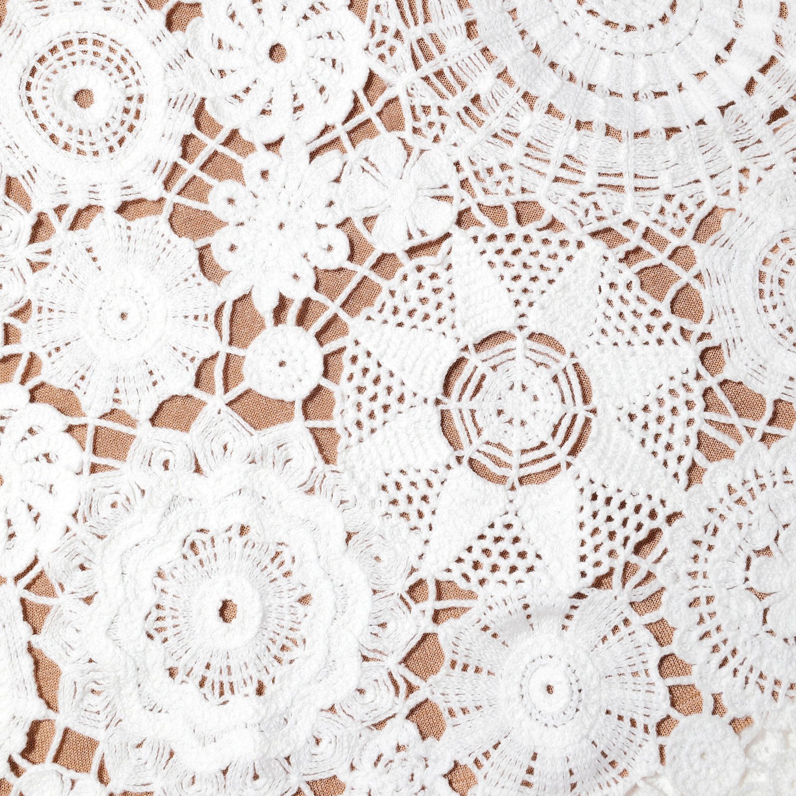 Майстерно виготовлені деталі, натхненні серветками, вишиті вручну на цій міні-сукні, в'язаній гачком. Глибоке декольте та асиметричний поділ додають особливої інтриги – доповніть образ туфлями на підборах для шикарних вечірок.