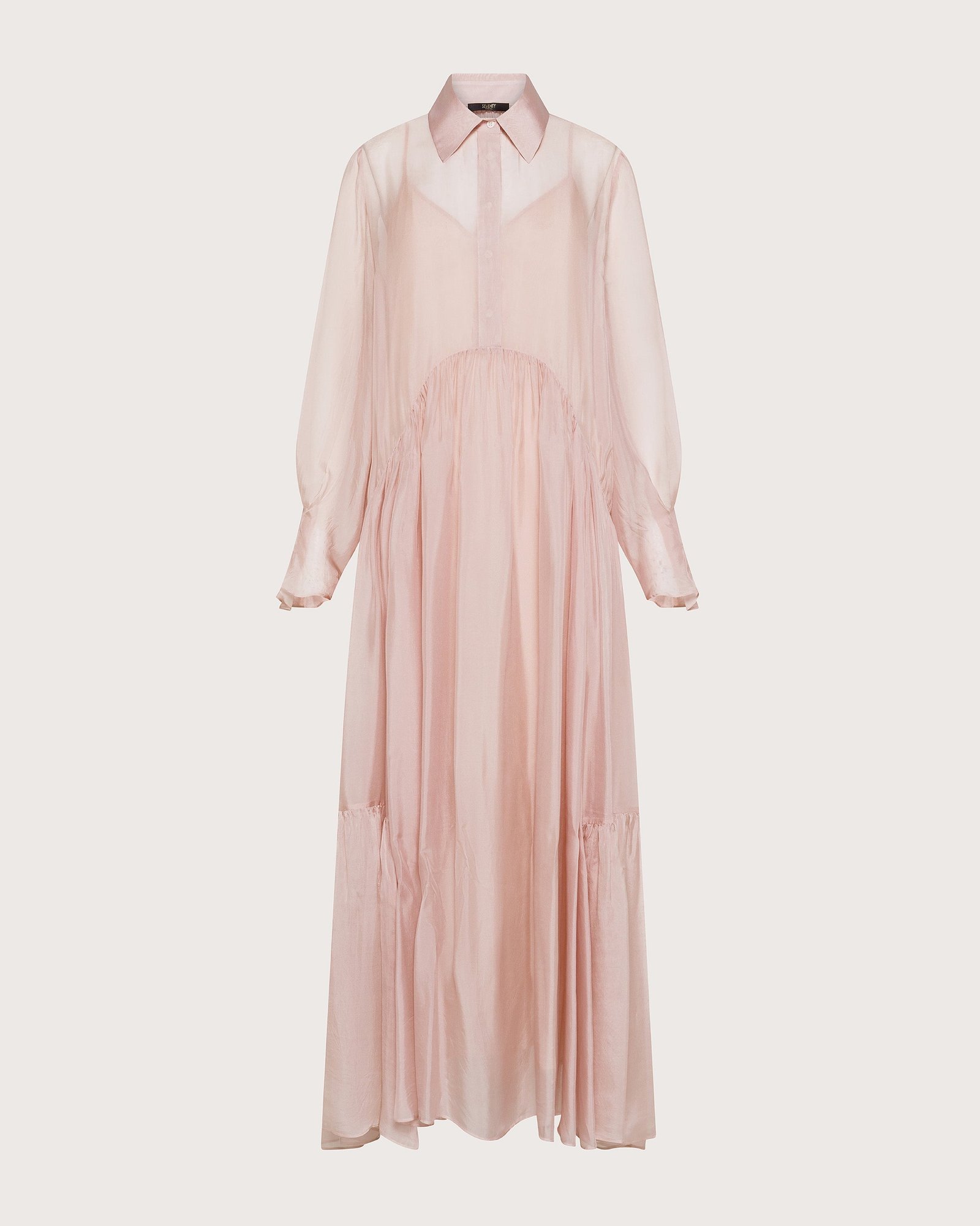 Длинное платье из вискозного шелка-вуаля с деталью на пуговицах спереди, пышными рукавами, вырезом на талии и комбинацией в тон.