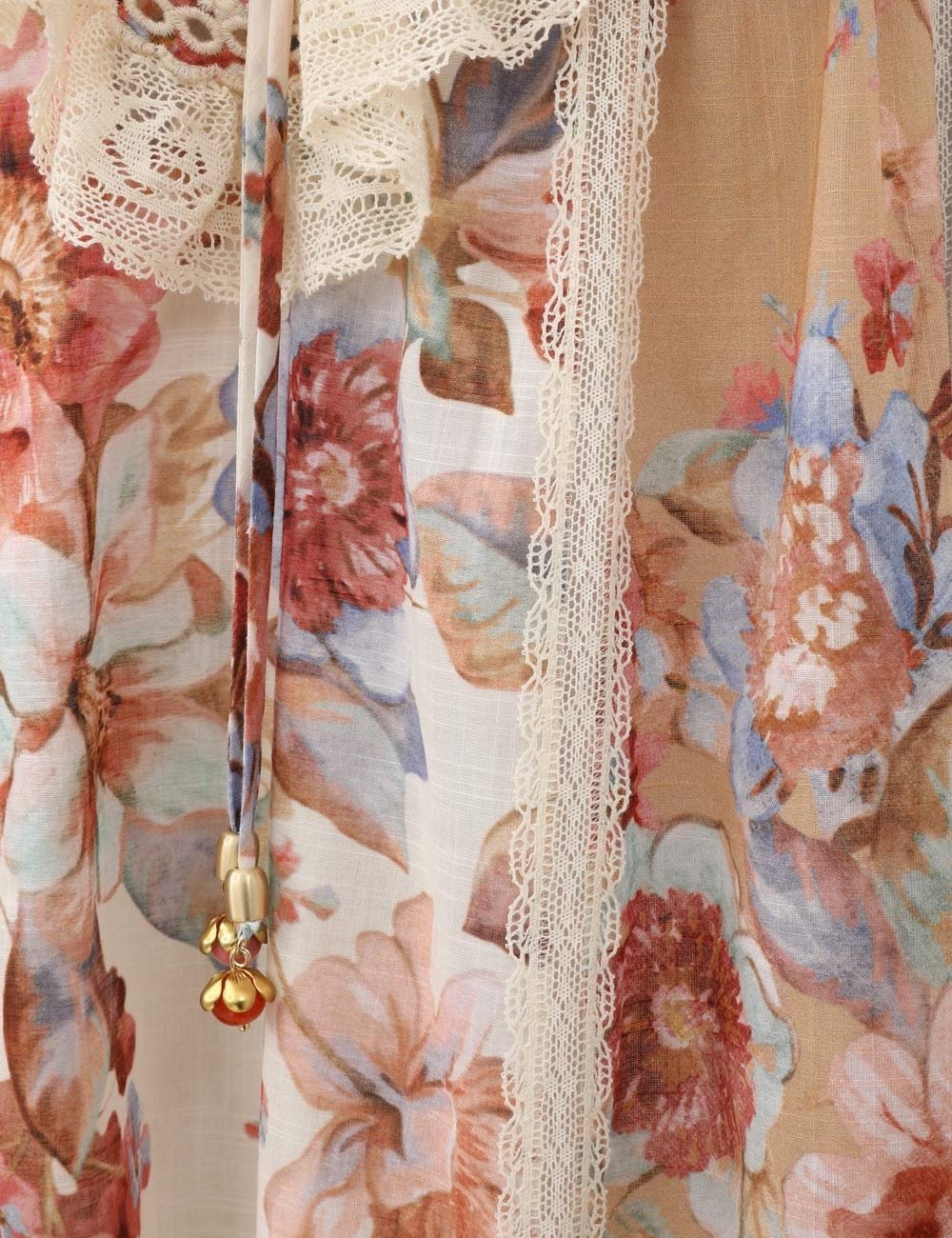 Платье Awaken с кружевной отделкой и принтом Spliced Print из коллекции Resort Swim 2026. Хлопковое макси-платье с глубоким V-образным вырезом, завязывающимися рюшами и бретельками-руло и плиссированной юбкой.