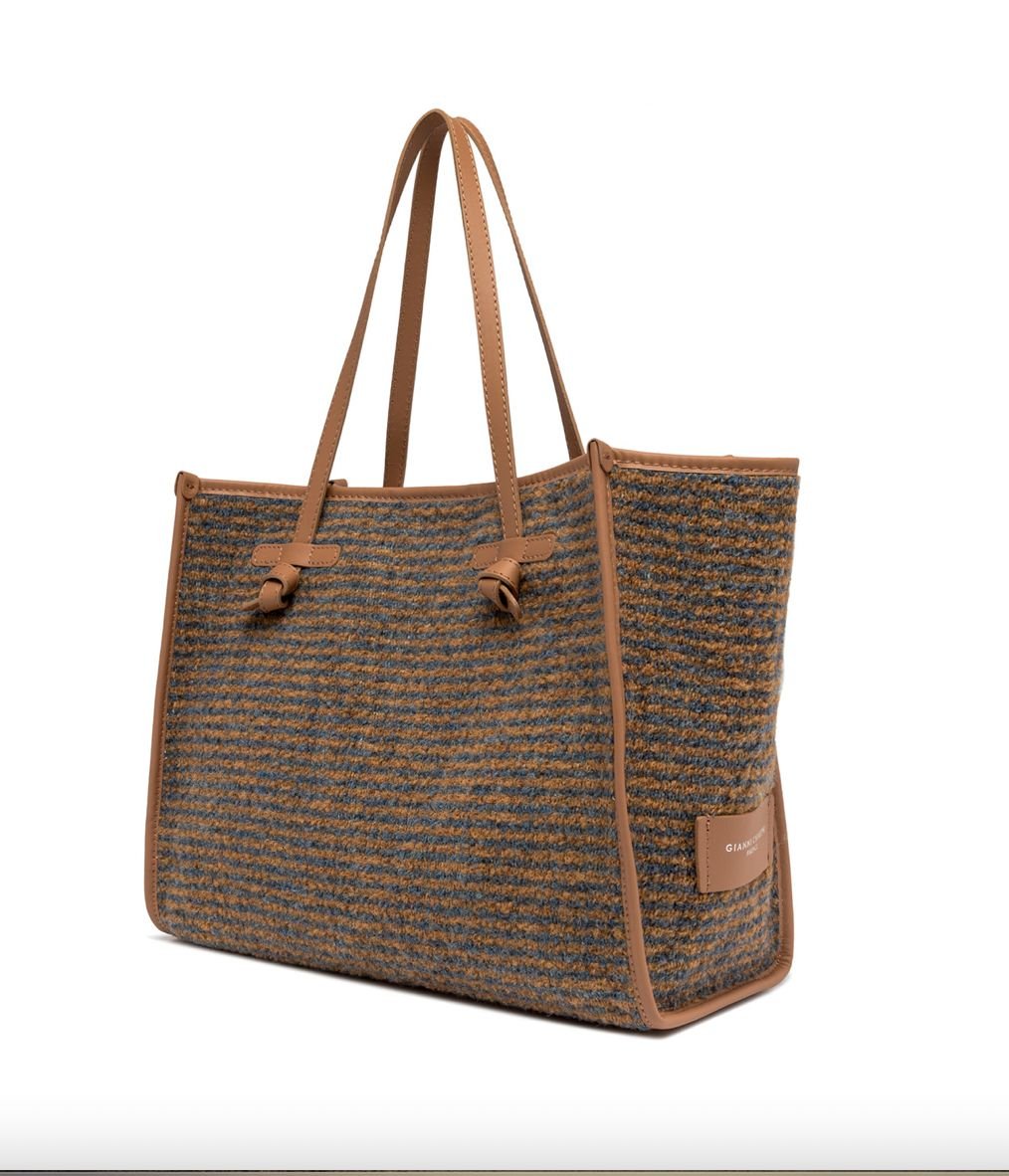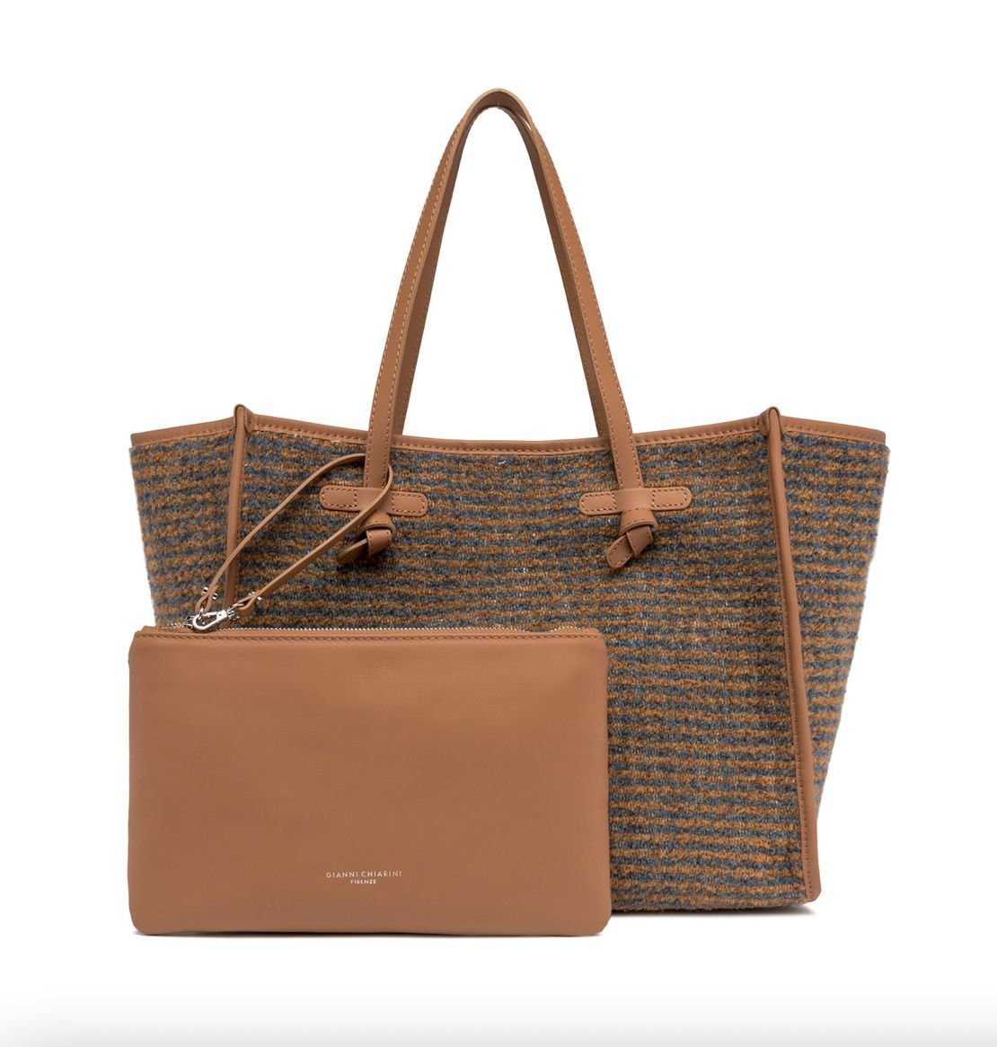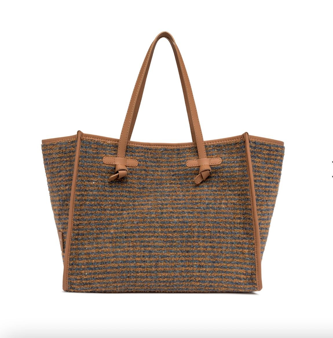 Шоппер сумка Marcella от Gianni Chiarini Firenze из ткани с эффектом оверсайза и переплетением горизонтальных полос.