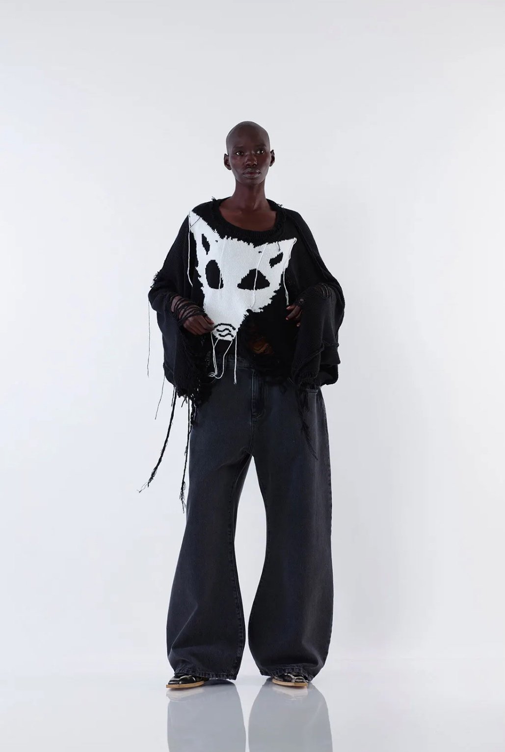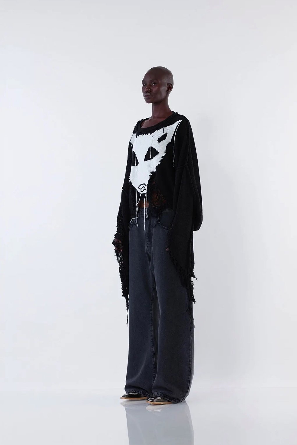 Вязаный кроп-свитер большого размера с интарсионным рисунком «NOT A FAN» спереди, потертыми деталями и потертыми краями