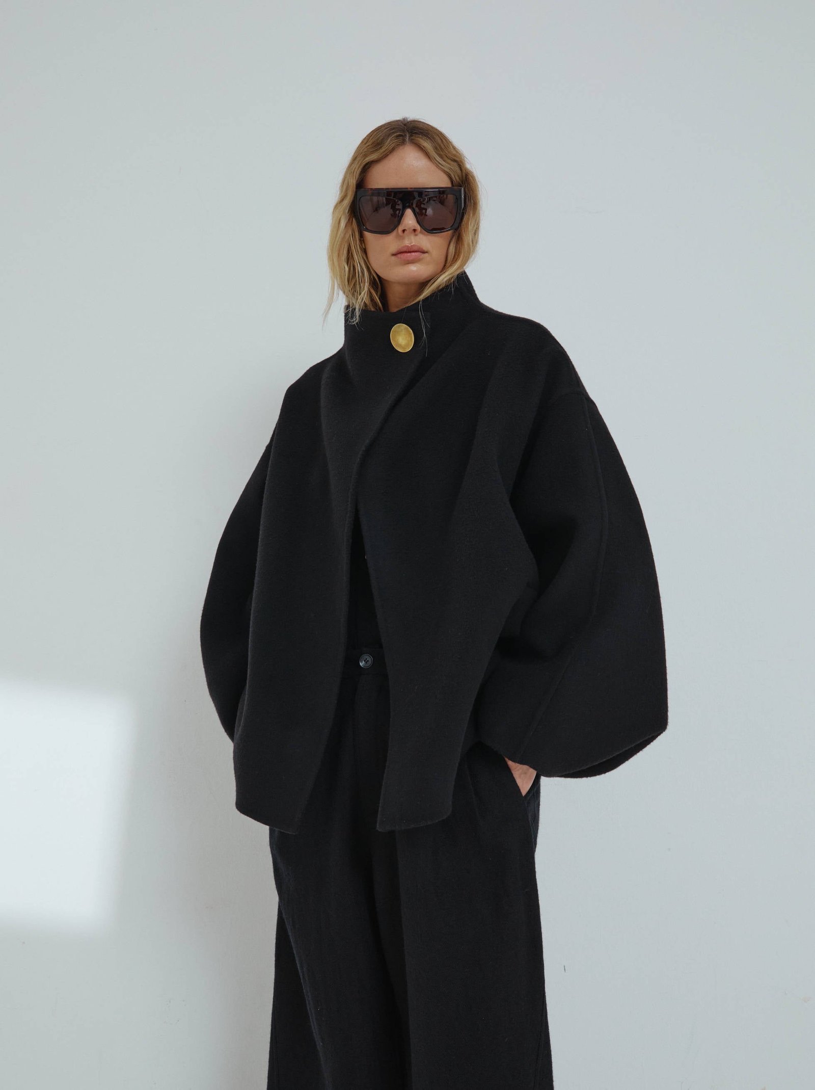 Шерстяное пальто NORTH MIDI оверсайз черного цвета из кашемира.