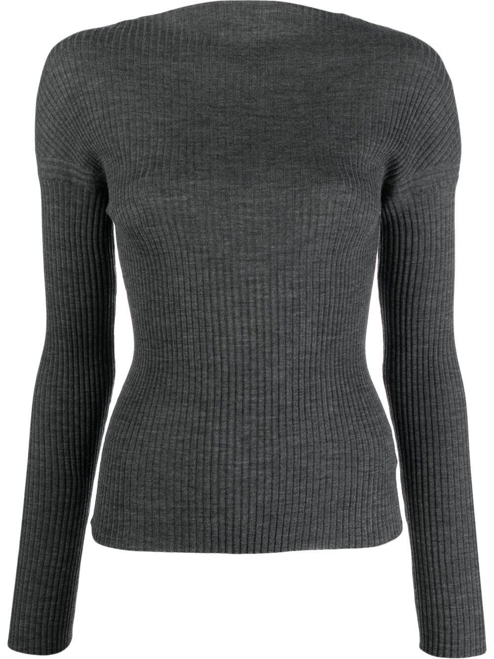 Опис: Топ у рубчик з довгими рукавами. Темно-сірий, необроблена вовна, трикотаж у рубчик, U-подібний виріз, U-подібний виріз на спині, довгі рукави та прямий поділ.
