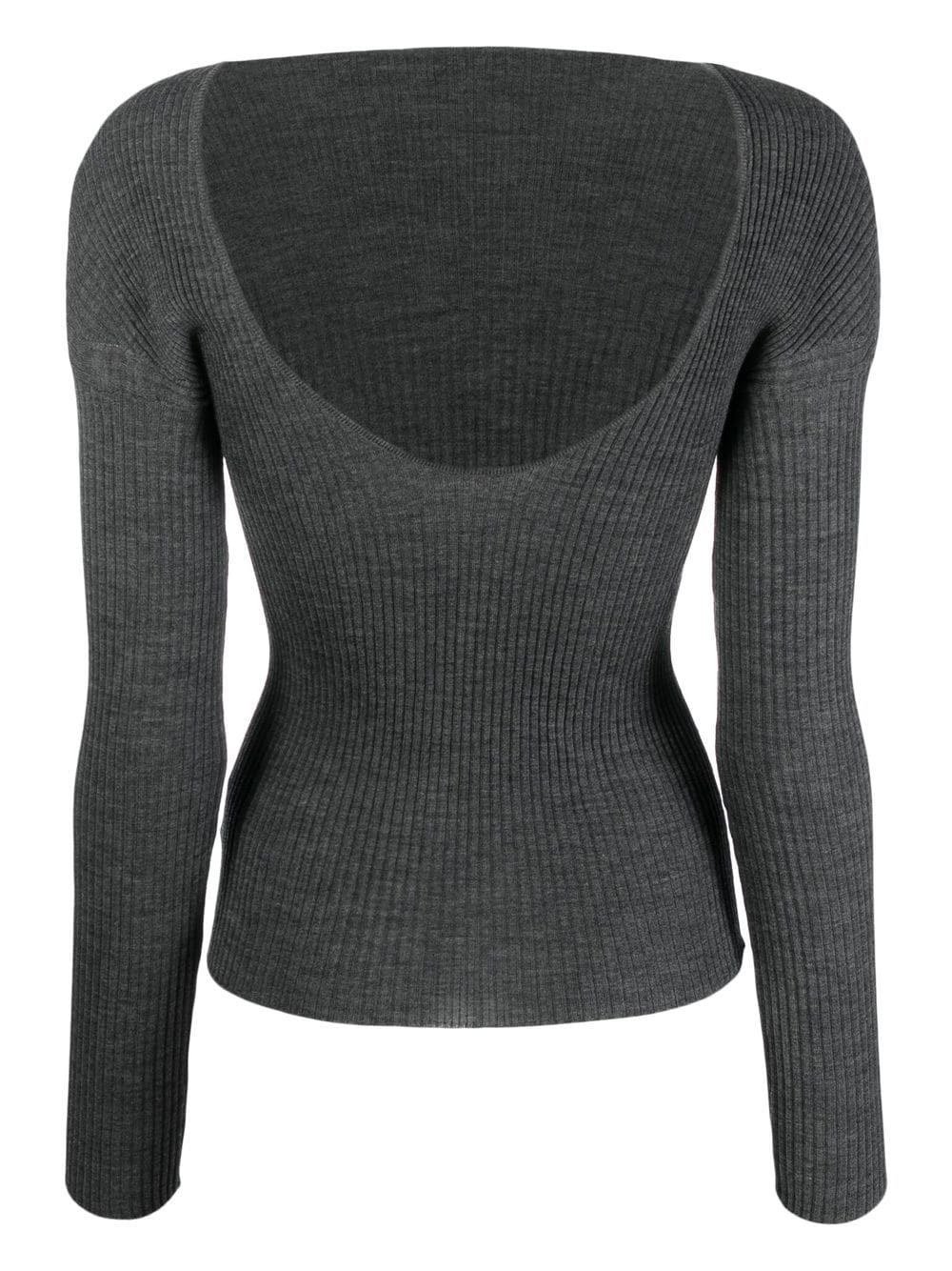 Опис: Топ у рубчик з довгими рукавами. Темно-сірий, необроблена вовна, трикотаж у рубчик, U-подібний виріз, U-подібний виріз на спині, довгі рукави та прямий поділ.
