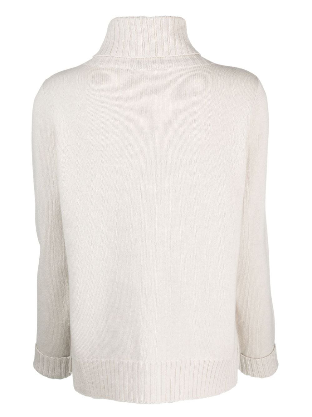Опис: Джемпер із змішаної вовни з високим коміром. Кремовий, змішана вовна, високий комір, вишивка, трикотажний матеріал та довгі рукави.