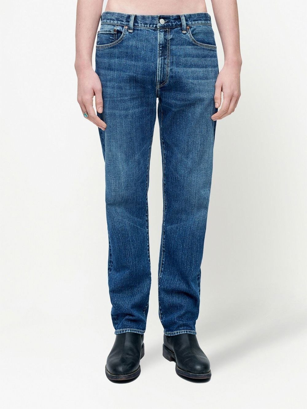 Опис: Прямі джинси вузького крою з вінтажного деніму.