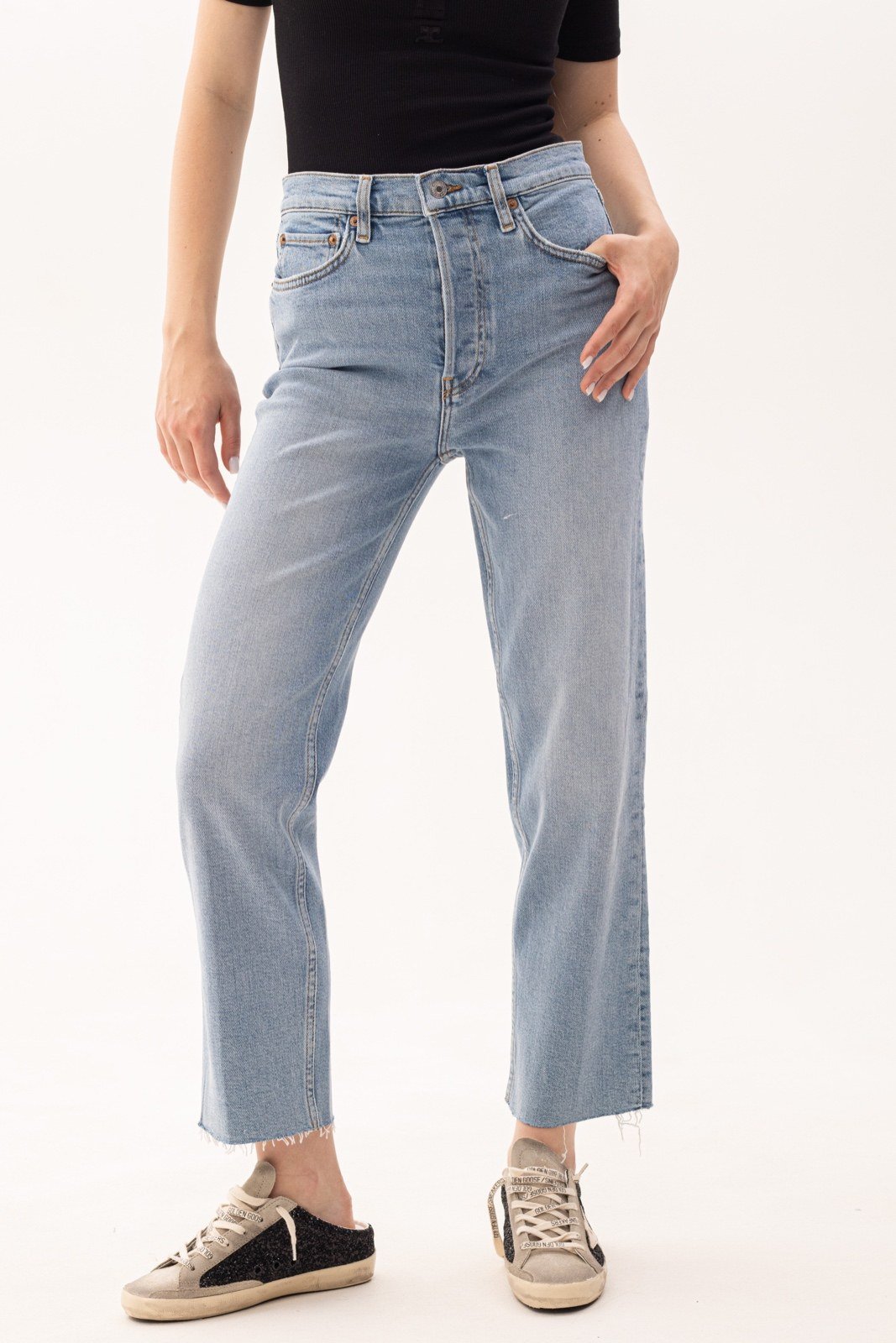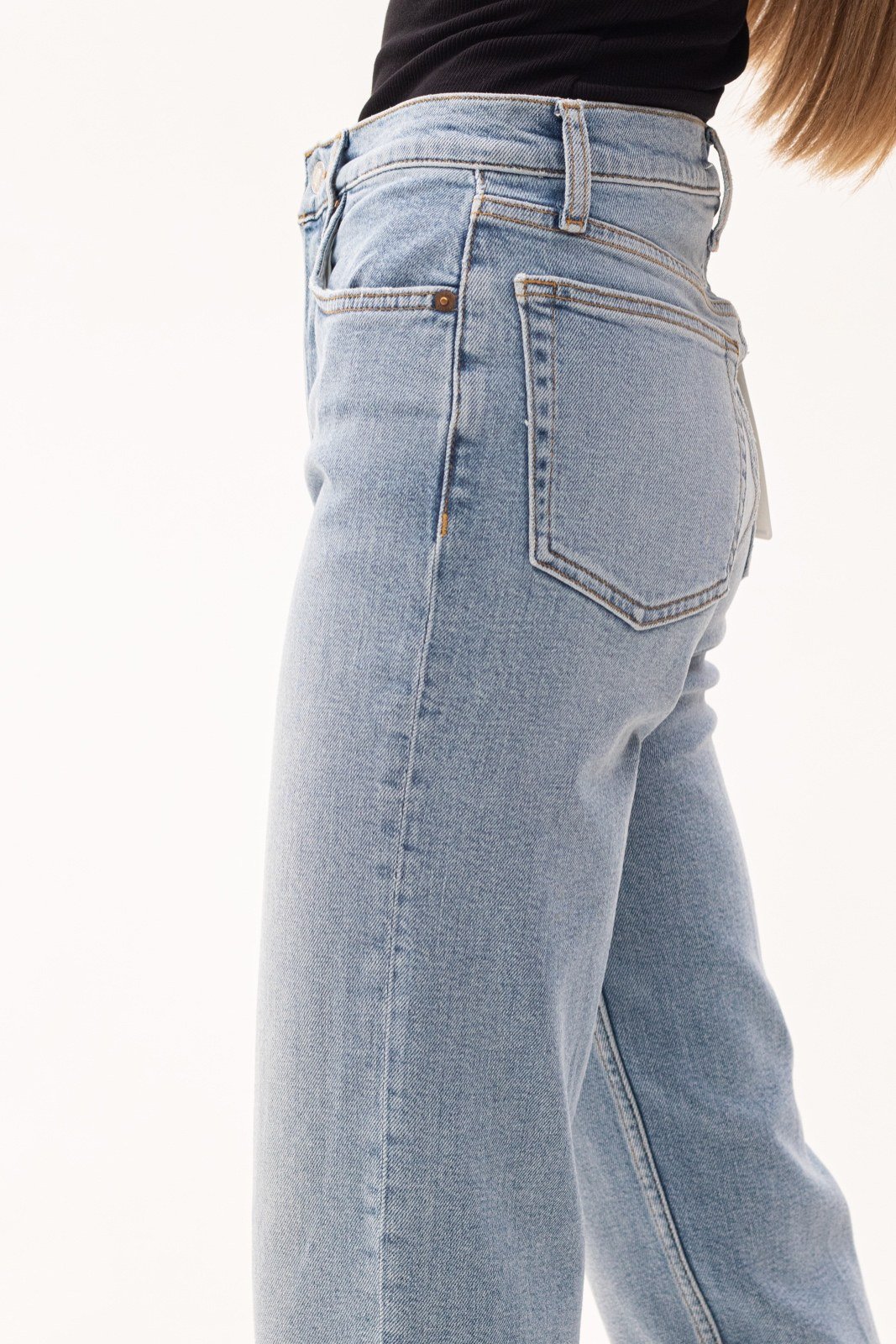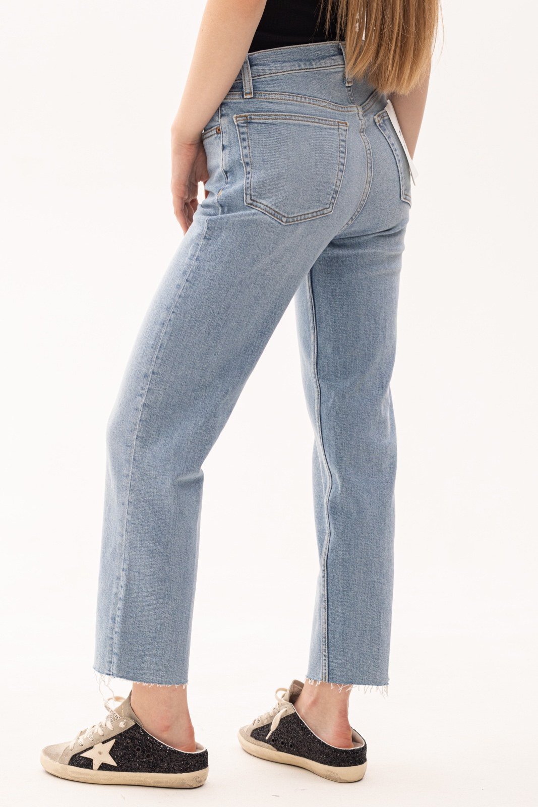 Укорочені прямі джинси 70-х років із стрейч-бавовни із укороченими прямими штанинами та необробленими краями.