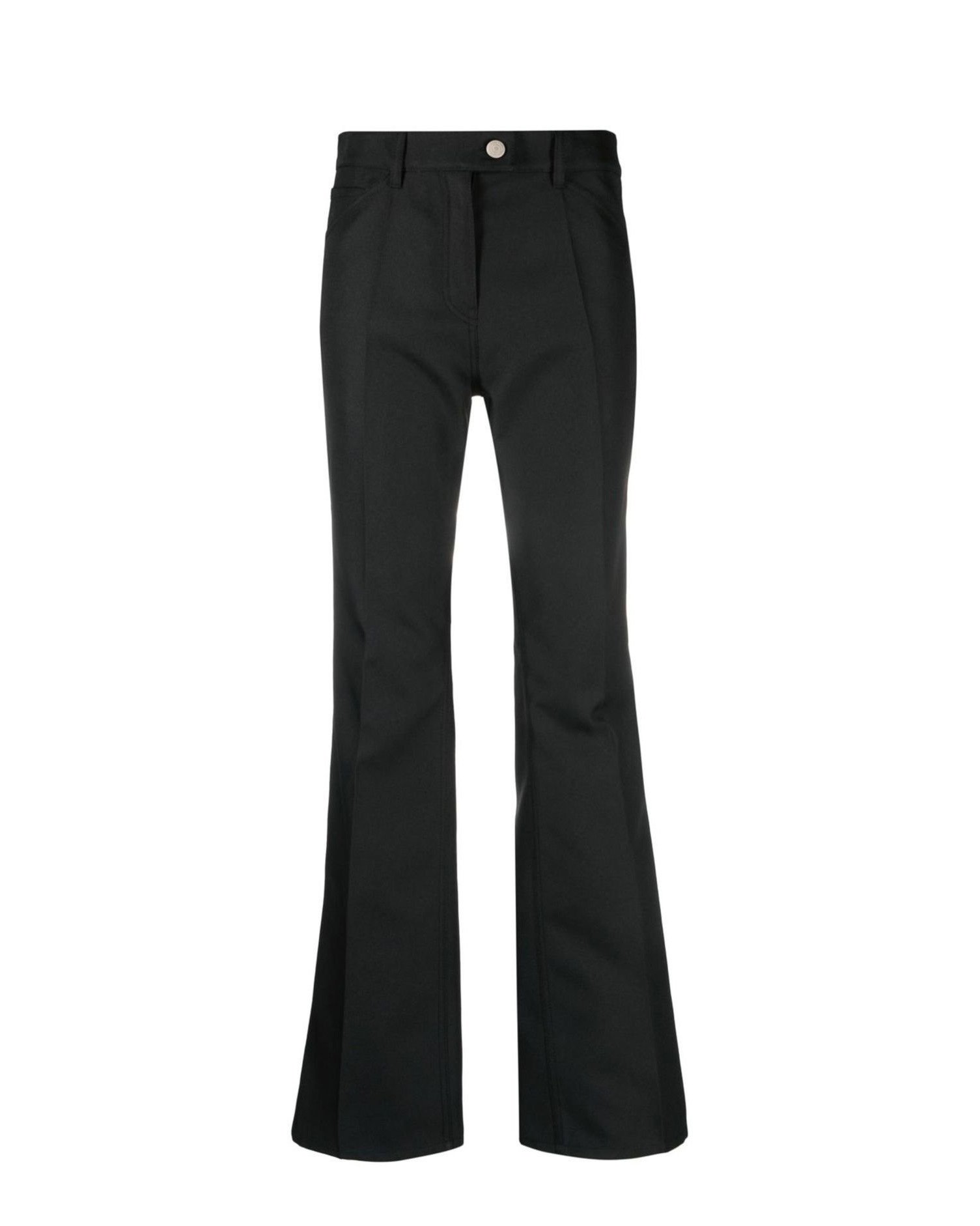 Опис: Розкльошені штани із завищеною талією. Чорна, бавовна, ефект потертості, завищена талія, петлі для ременя, застібка на ґудзиках спереду, дві вшиті кишені з боків, дві накладні кишені ззаду, розкльошений крій і довжина максі.