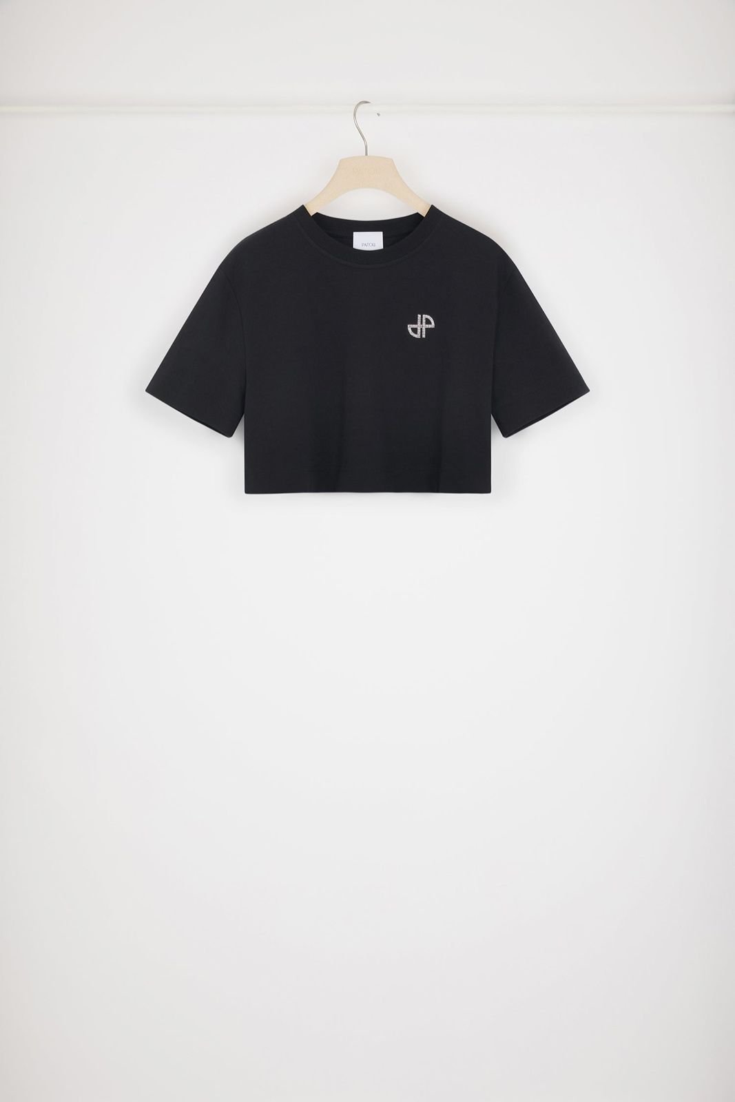 Чорна футболка з органічної бавовни. Звичайна посадка. Стрижена довжина. Crystal JP на грудях і Patou на спині.