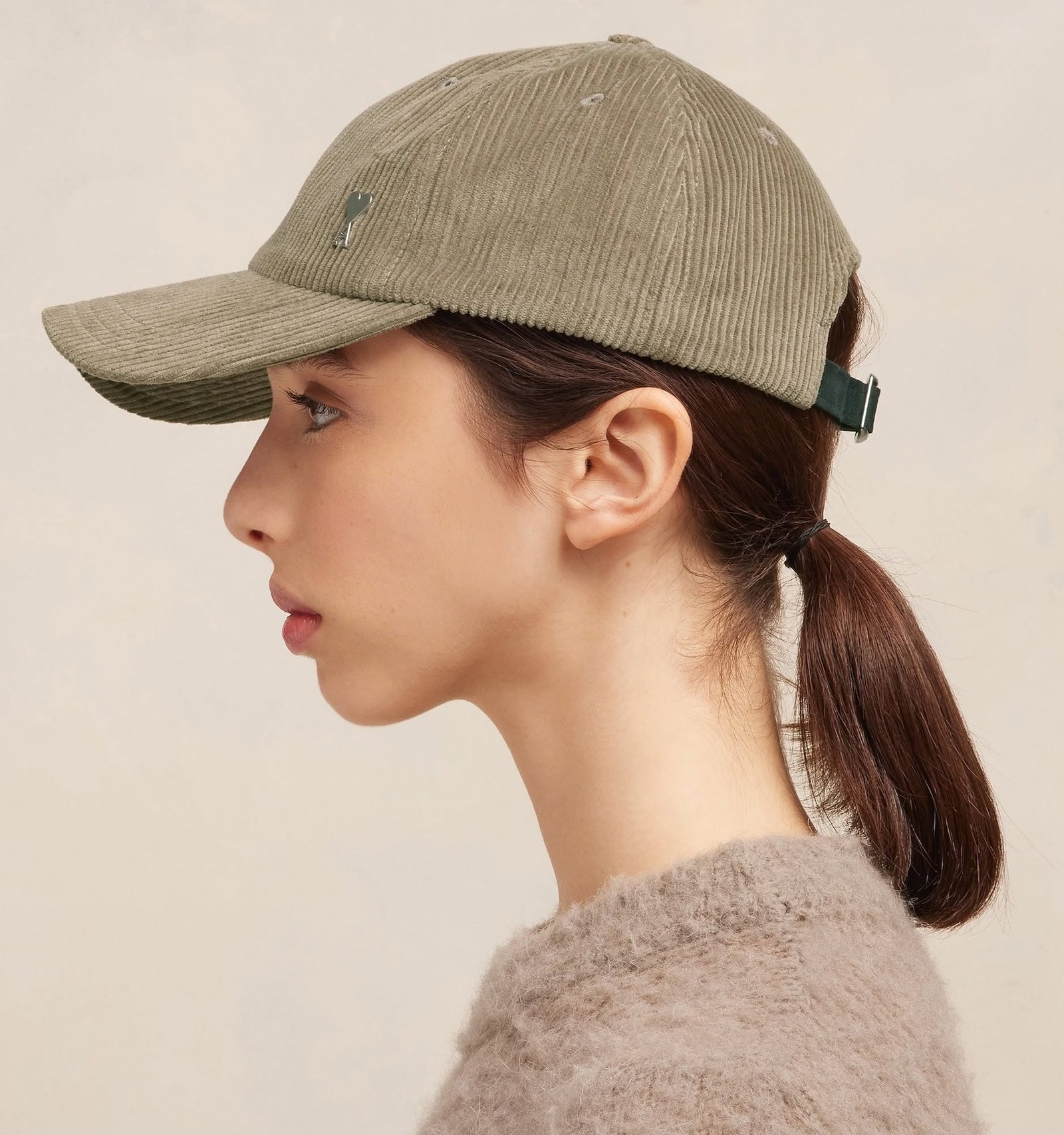 Опис: Кепка з бавовняного вельвету. Металеві шпильки Ami de Coeur. Ззаду регулюється шапка, тільки один розмір. Зроблено в Італії.