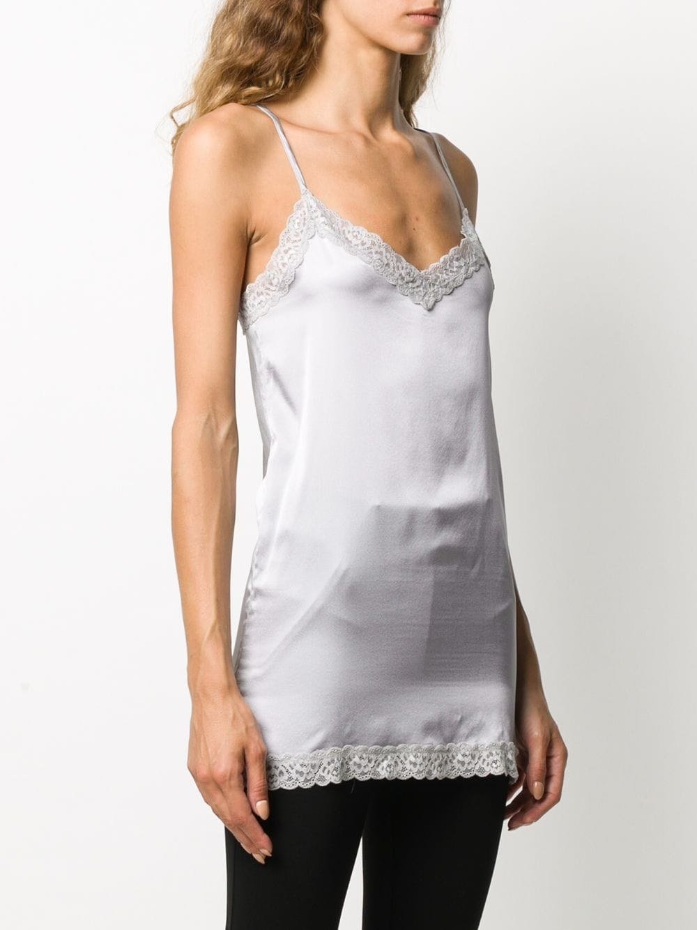 Тонкі бретелі, V-подібний виріз, мереживне оздоблення та краї з фестонами.