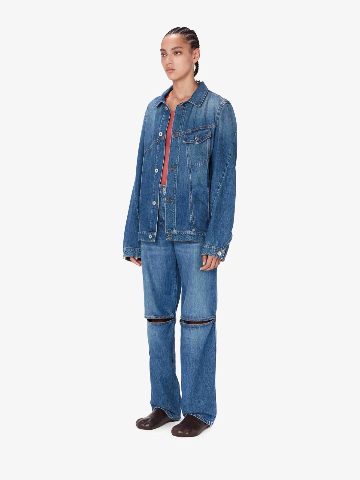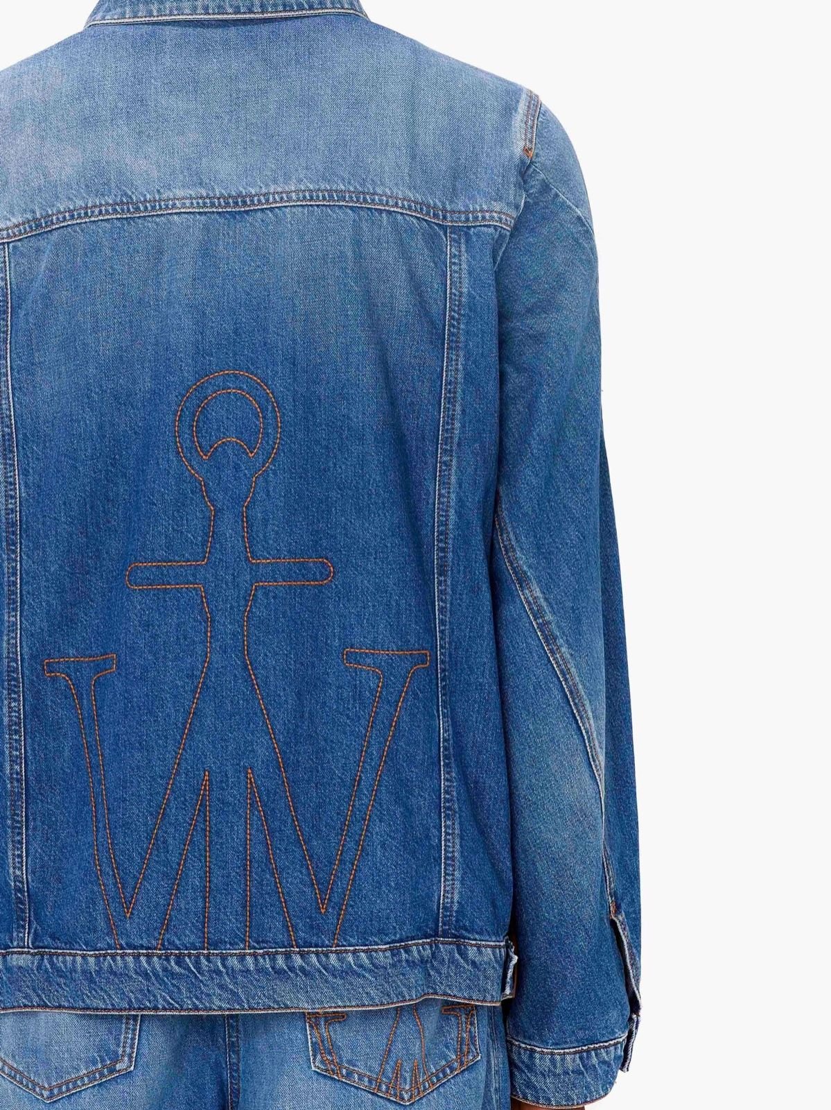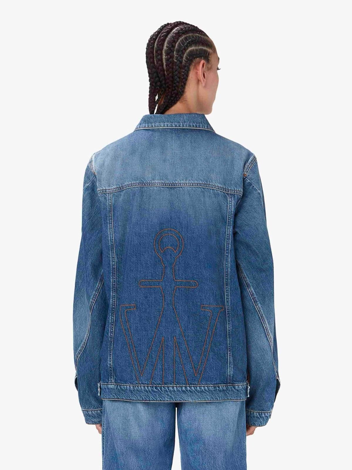 Джинсова куртка прямого крою. Контрастна верхня строчка. Шкіряна нашивка з тисненням логотипу. Срібна фурнітура.