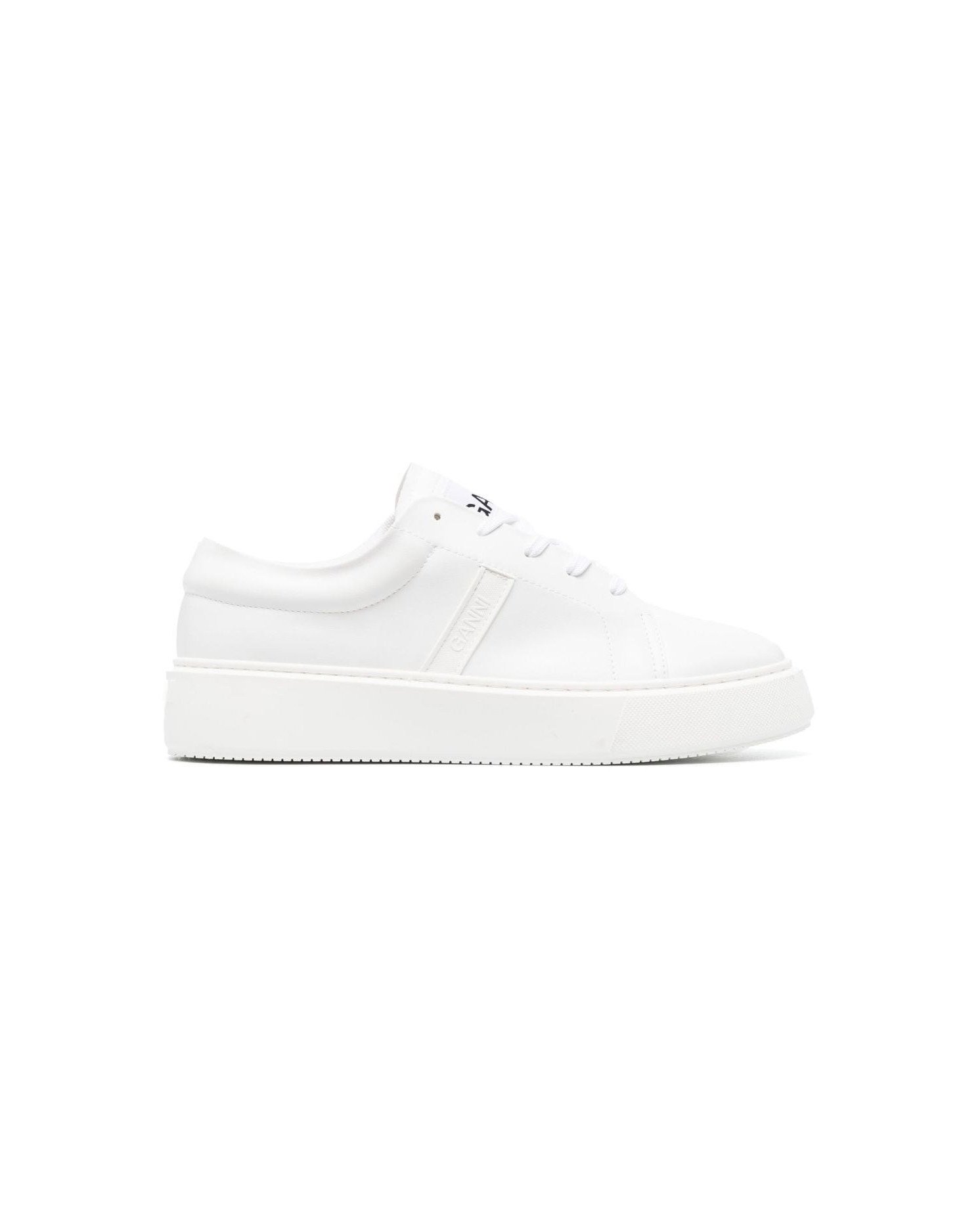 Білий. Тиснений логотип збоку. Тиснений логотип позаду. Закруглений носок. Шнурівка спереду. Нашивка з логотипом на язичку. Устілка з логотипом. Плоска гумова підошва.