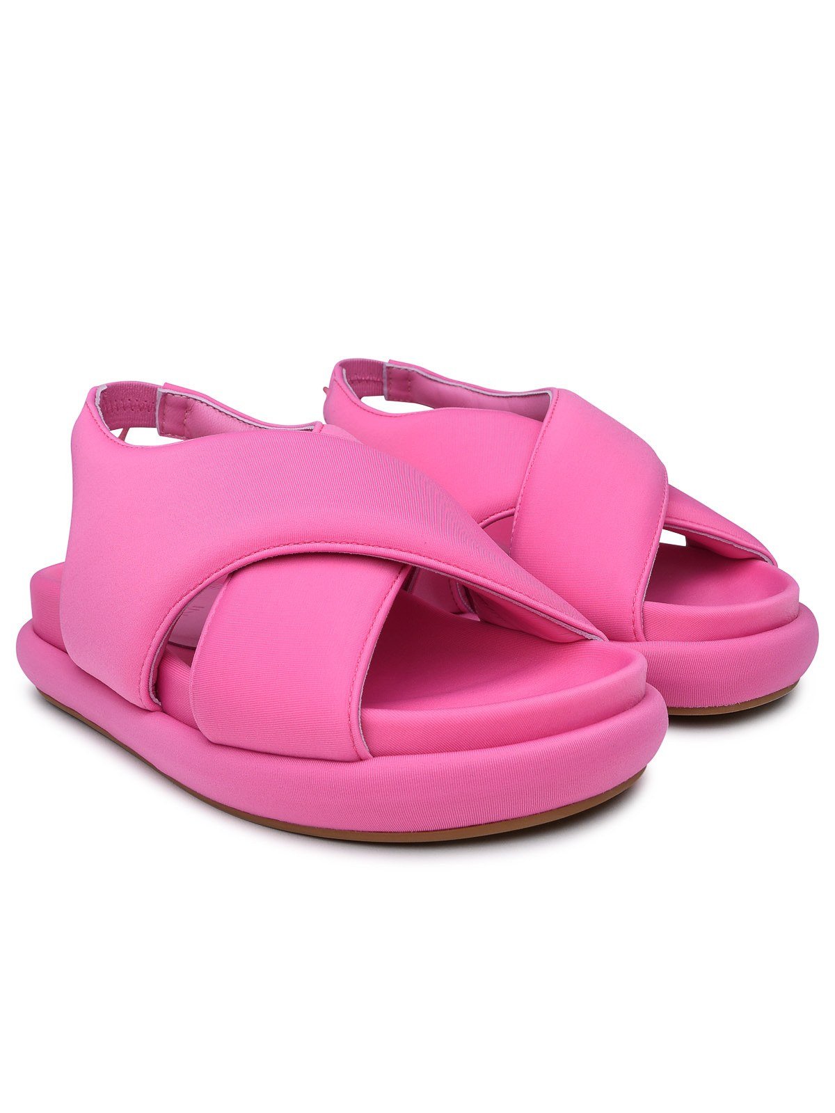Опис: Сандалі Gia 29 з тканини кольору фуксії. М'яка верхня регульована спинка.