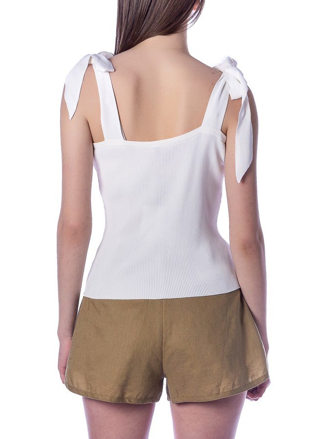 Опис: Майка на зав'язках. Майка на широких зав'язках, ребриста, квадратний виріз.