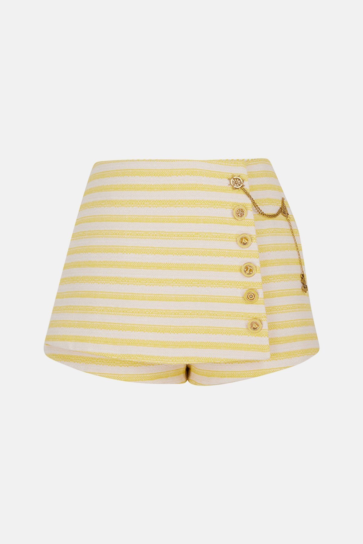 Ексклюзивна обробка. Шорти зі суміші бавовни. Ґудзики в морському стилі. Золотий ланцюжок. Кишені по бокових швах. Невидима блискавка закриття.