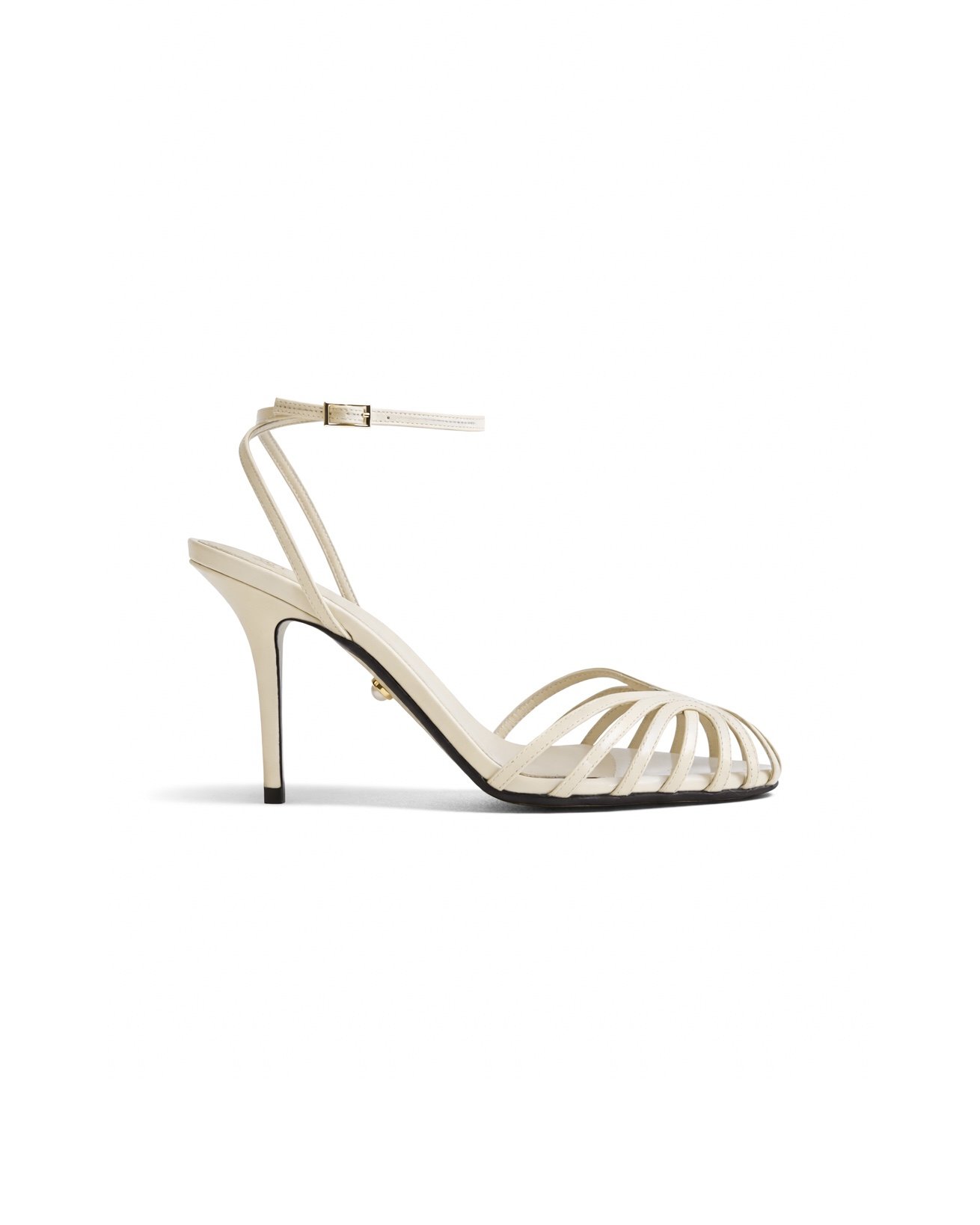 Тонкі смужки на носках і перехрещений ремінь на щиколотці з маленькою боковою пряжкою.