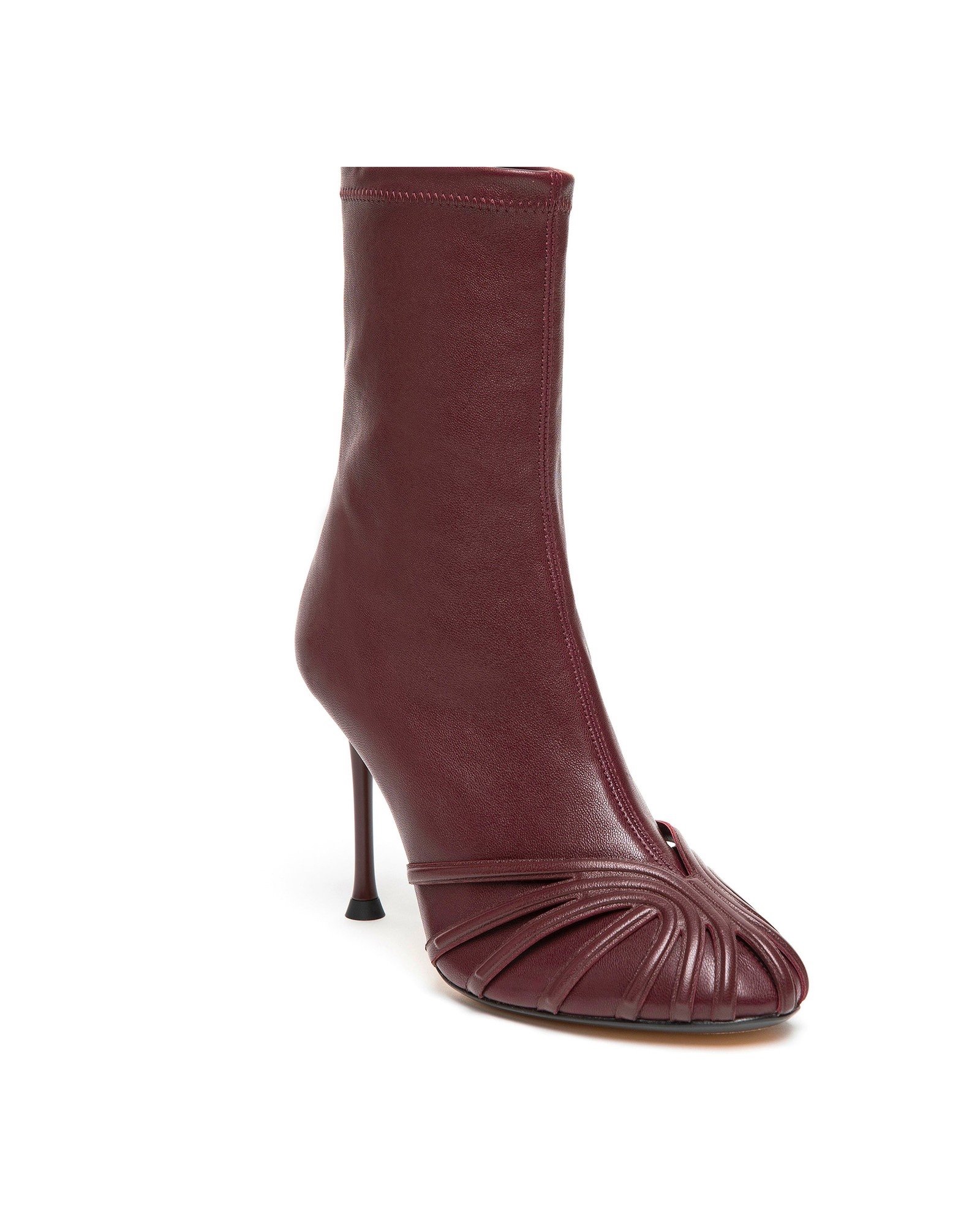Ботильйони з еластичної шкіри наппа з ефектом рукавички та м'якою кліткою зі шкіри наппа в тон. Матовий лакований каблук у тон.