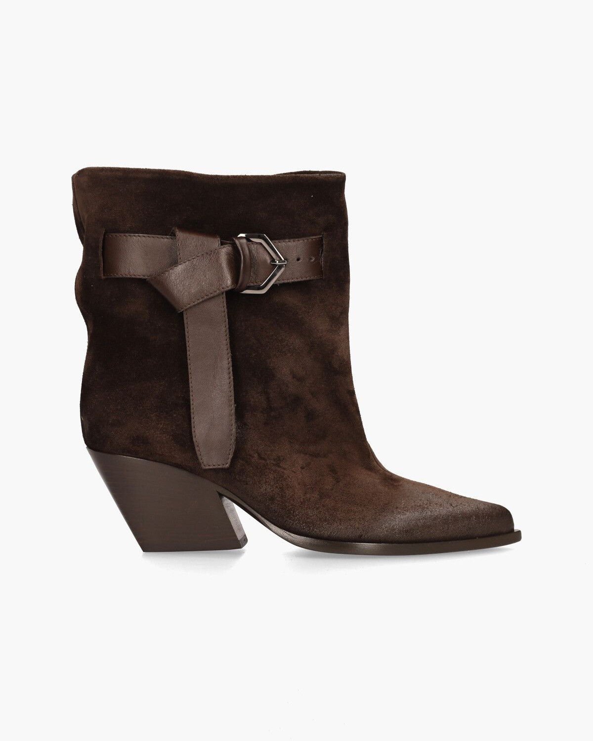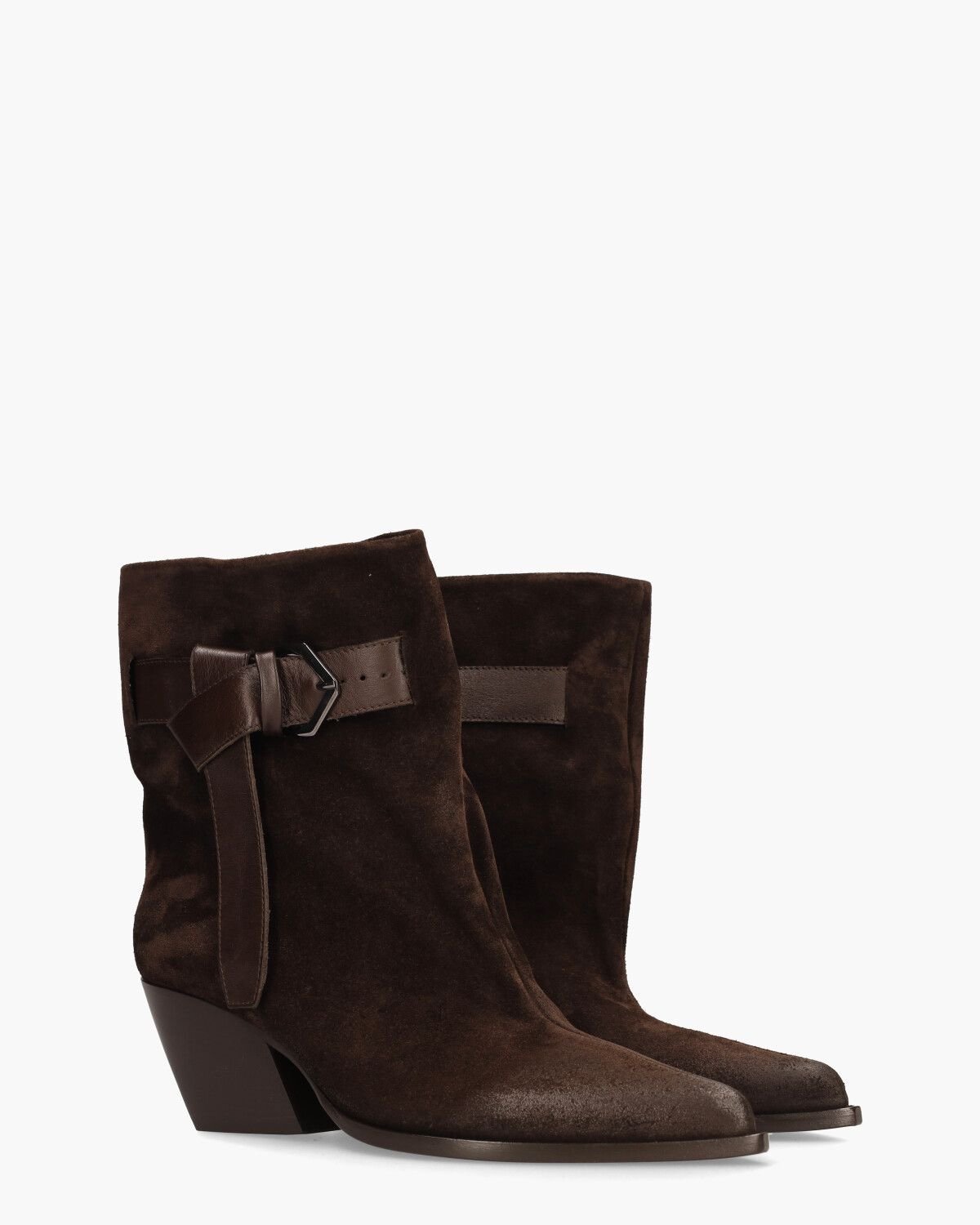 Ефектний, похилий блочний каблук висотою 7 см надає чоботям потужного вигляду, а шкіряний ремінець із вузлуватим шнурком та пряжкою додає міцності та міцності. Чобіт має загострений носок, який додає нотку стилю. Всередині шкіряна підкладка з фіксованою устілкою забезпечує комфортну посадку.