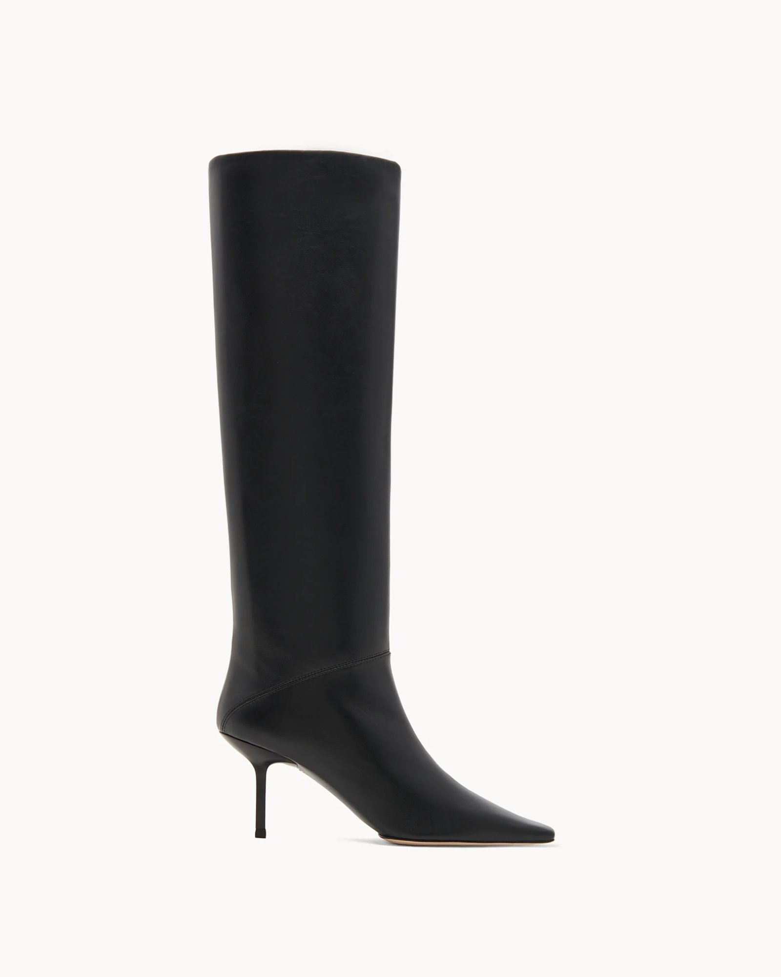 Чоботи Orsola – це позачасове втілення елегантності. Виготовлені з розкішної шкіри наппа, їх елегантний силует заввишки 42 см до коліна подовжує ногу, а загострений носок та скульптурний 75-міліметровий лакований каблук з абсорбуючого матеріалу додають сучасного вигляду. Вони мають підошву з натуральної шкіри ручної обробки та подвійну прострочку для довговічності.